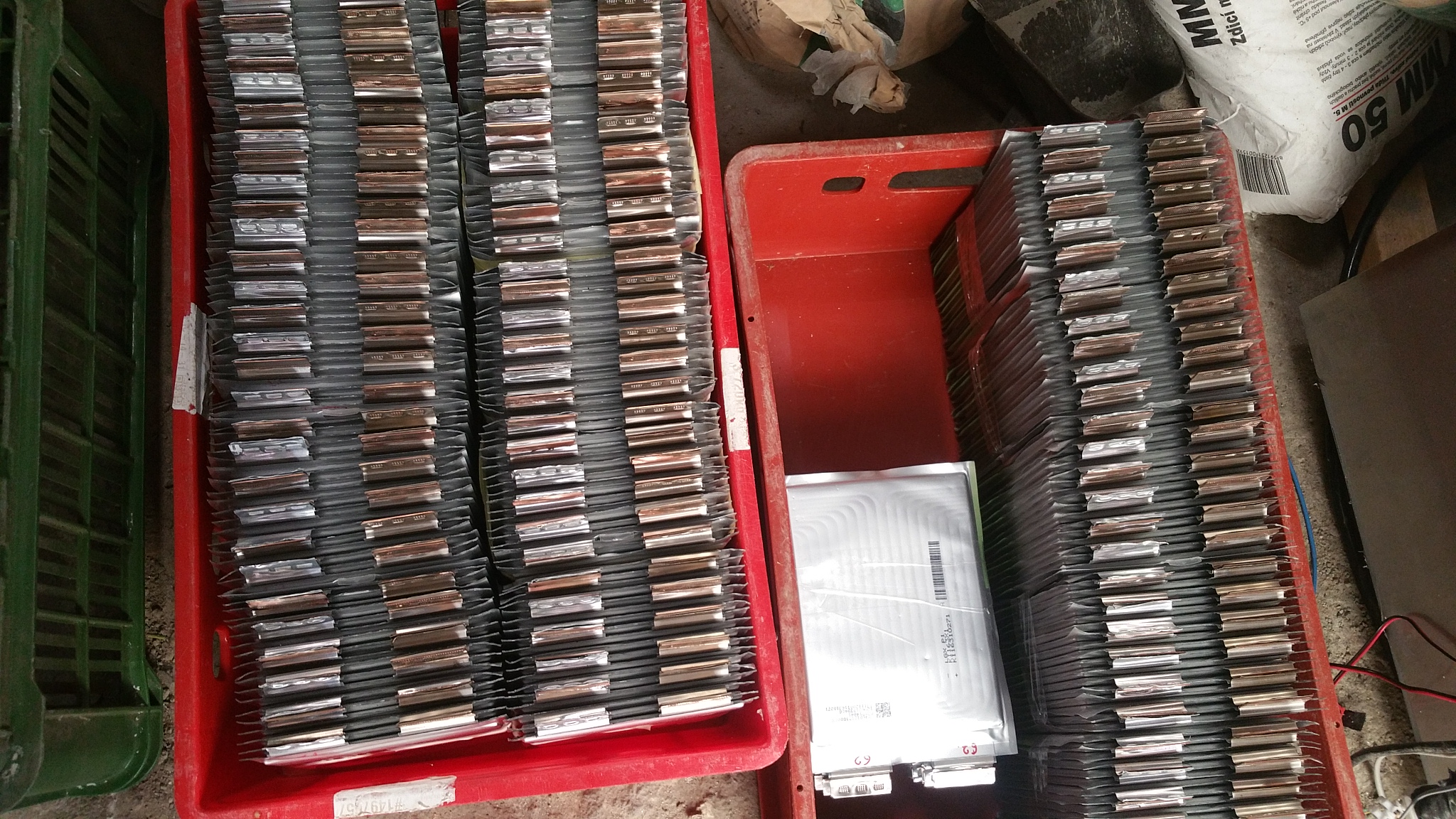 Já o ně za tuto cenu zájem už nemám,protože bych vlastně použil jen ty trojité pytlíky nabodované k sobě(3x6=18p/15s),které bych musel nějak rozřezat a tvořil bych celou baterku znova včetně kontaktů pólů a obalů,vše ostatní by letělo do odpadu.