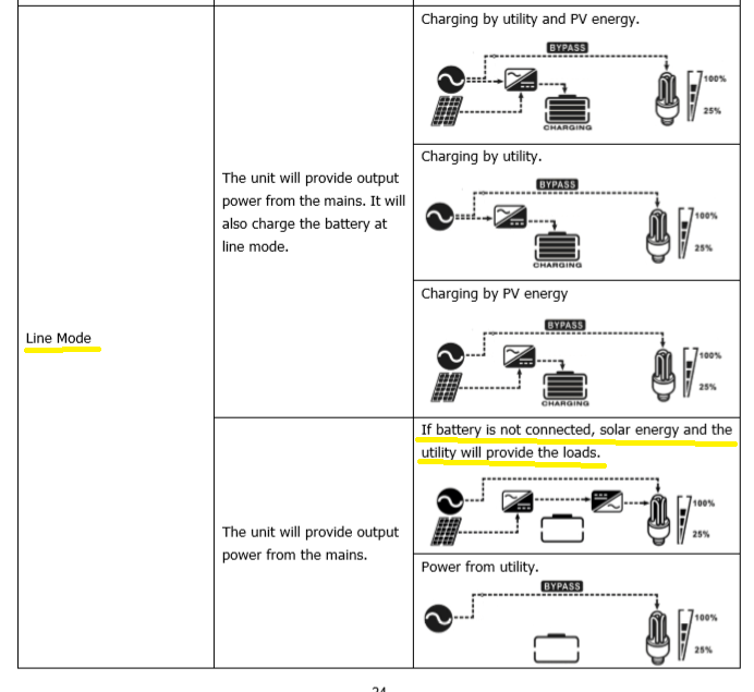 Svítí i je baterie ale začnu brát víc než 5kw tady mám potvrzeno že místo bypas použije line mode tak kdyby to šlo potvrdit?