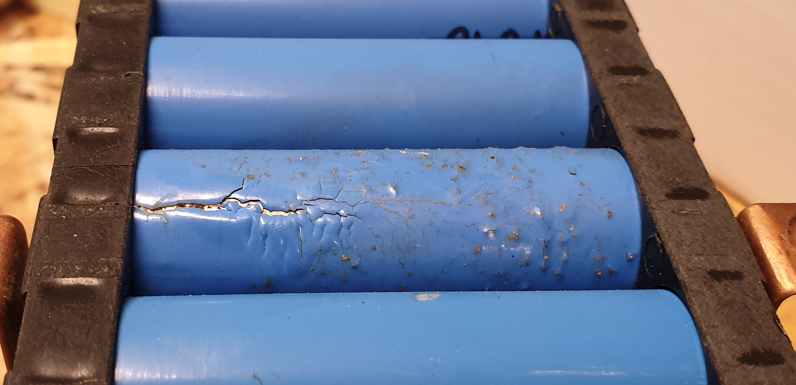 Článek který je v pořádku, za měsíc už v pořádku být nemusí. Z těch jak tu říkáte značkových odešlo víc jak 1% za půl roku prostě jen tak a je to na nich poznat vzhledem, spousta další je taky mrtvá, jen to není na první pohled vidět, to si iluze nedělám. Vyjímku v mé statistice tvoří hnědé LG a zelené Panasonic, ty jsem viděl vadné v packu, ale po zapojení do mého packu ještě žádný neodešel. Ostatní Samsung, Sanyo, Sony, LG, noname, všechny odchází. na to je třeba být připravený, čím déle budou ležet, tím menší mají hodnotu. To je pouze tím, že mám málo dat ve statistice, je to pouze otázka času kdy zaregistruju i tyto poslední vadné za čas. Upozorňuju, že ty drátky jsou 0.2mm a přepalují se až při 8A. Častěji v mých statistikách se článek odpojí vevnitř a nikoliv ten vnější 0.2mm drátek. Za patřičného vývinu tepla jak je vidět na fotkách