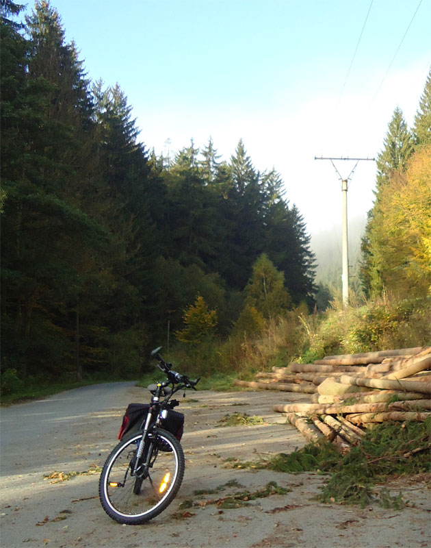 S dojezdem je trochu problém - na 36V/10Ah baterii při tom závěrečném stoupání zátěží dost poklesne napětí a elektronika ji odpojí, pokud má trochu více najeto. Po odpojení motoru se baterka tváří zase dost nabitě a v běžném terénu normálně pomáhá. Což znamená, že ji musím udržovat hodně nabitou, nejlépe dobíjet před každou cestou. Nemám tady na Vysočině trasu, kde by nebyl takový kopec, takže vyzkoušet dojezd až do úplného vybití se mi ještě nepodařilo. No, a zmíním taky to, že e-kolo rozhodně nejede samo, do kopce se člověk dost namaká e-kolo ne e-kolo