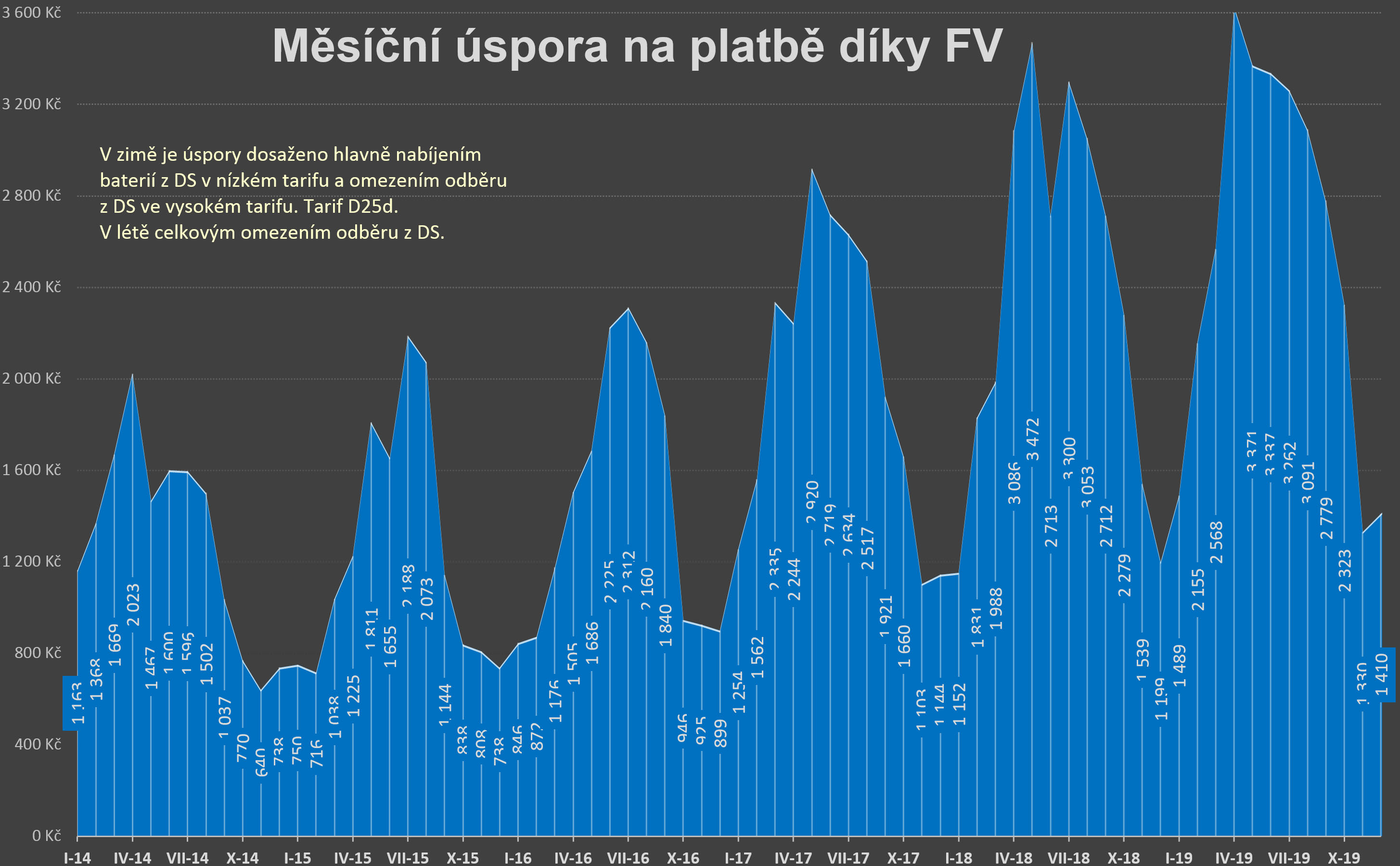 Podívej se, jak to pro daný tarif s přeléváním NT-VT vypadá u mě https://forum.mypower.cz/download/file.p ... &mode=view. Bez přelévání by komponenty elektrárny 3 měsíce lenošily (a i tak stárly - hlavně baterie), takto nesou alespoň něco a návratnost bude snad o něco rychlejší. A ta ztráta je užitečné teplo ohřívající barák jako přímotopy.rokytna píše:Rád bych prodiskutoval výhodnost systému, kdy je baterie (zde bude US3000, ale řekněme obecně) nabíjena jen z NT (tarif D25d), a pak využívána v době VT.