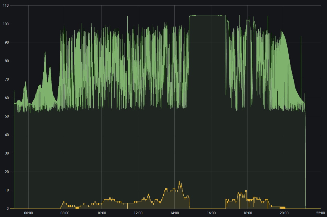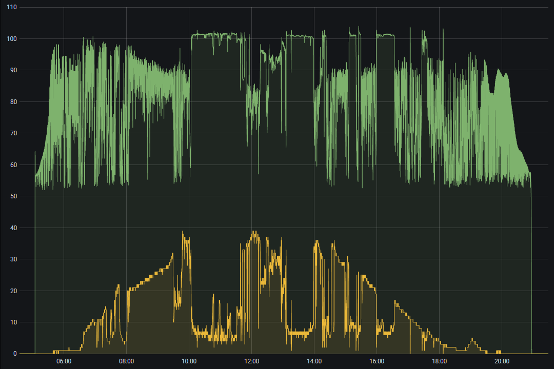 Ta grafana je právě super protože umožňuje zobrazit cokoliv a jakkoliv, a mít to i "propojené", takže např. vidím že byl odběr (SDS hlásí stav elektroměru) vůči teplotě měniče (třeba roste a hledám proč) a současně vůči stavu baterie (klesající SOC). A všechna data v influxDB takže se k nim i zpětně dostanu. A to MQTT je také super, protože to můžu z měniče krmit aktuální hodnotou do MQTT a odsud to v SDS nezávisle číst a řídit tím třeba zátěže. A celé se to pak dá pěkně a bezpečně vzdáleně ovládat (např. když jsem v práci).