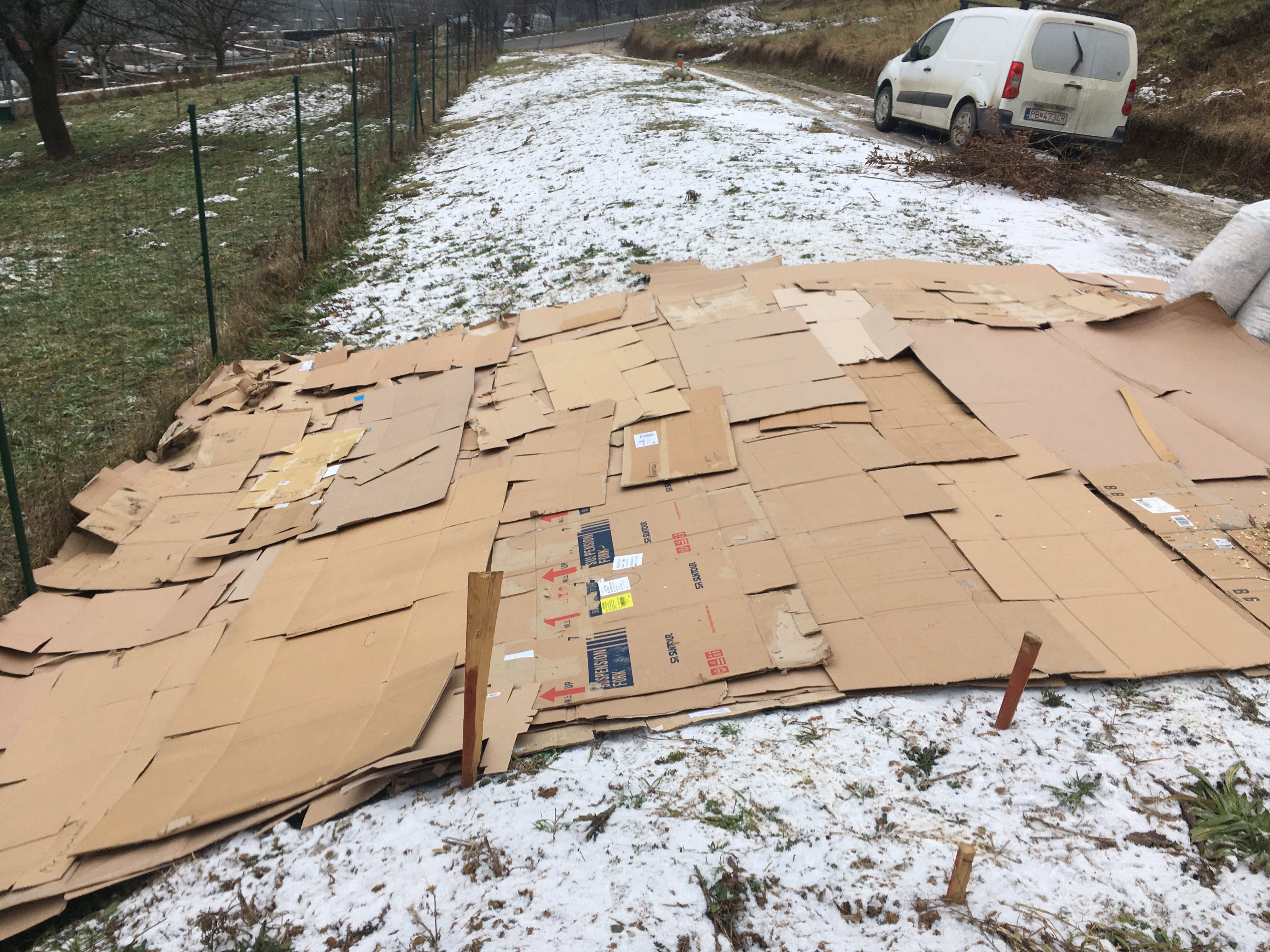 . Tj pokud by na místě zůstal karton, tak by tam nezůstala štepka, nebo nejpavděpodobněj by to dolů sjelo všecko. Ony i ty kopřivy musí někde růst, je to součást přírody.
