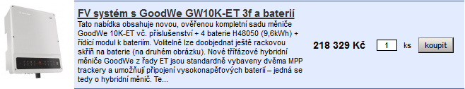 Hele i nejdražší solárnickej eshop na světě, pan Kolařík, má v nabídce set 10kW hybrid + 10kWh HV AKU za pár šupů: