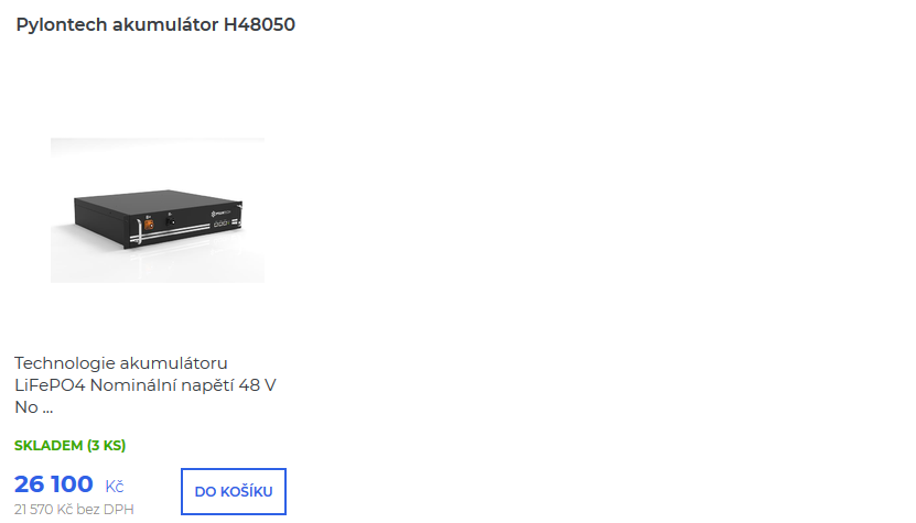 https://ostrovni-elektrarny.cz/index.ph ... -a-baterii Ta 10kWh HV baterka se dá rozšiřovat po jedné 2.5kWh cihle, která stojí 26 tis Kč: Drahé rozšíření (vždy po dvou cihlách, 5kWh za 50 tis Kč) nastavá až při překročení 20kWh kapacity baterie. Což ale s hybridem pravděpodobně nebude nikdy potřeba.Narozdíl do ostrova, kde baterek není nikdy dost.