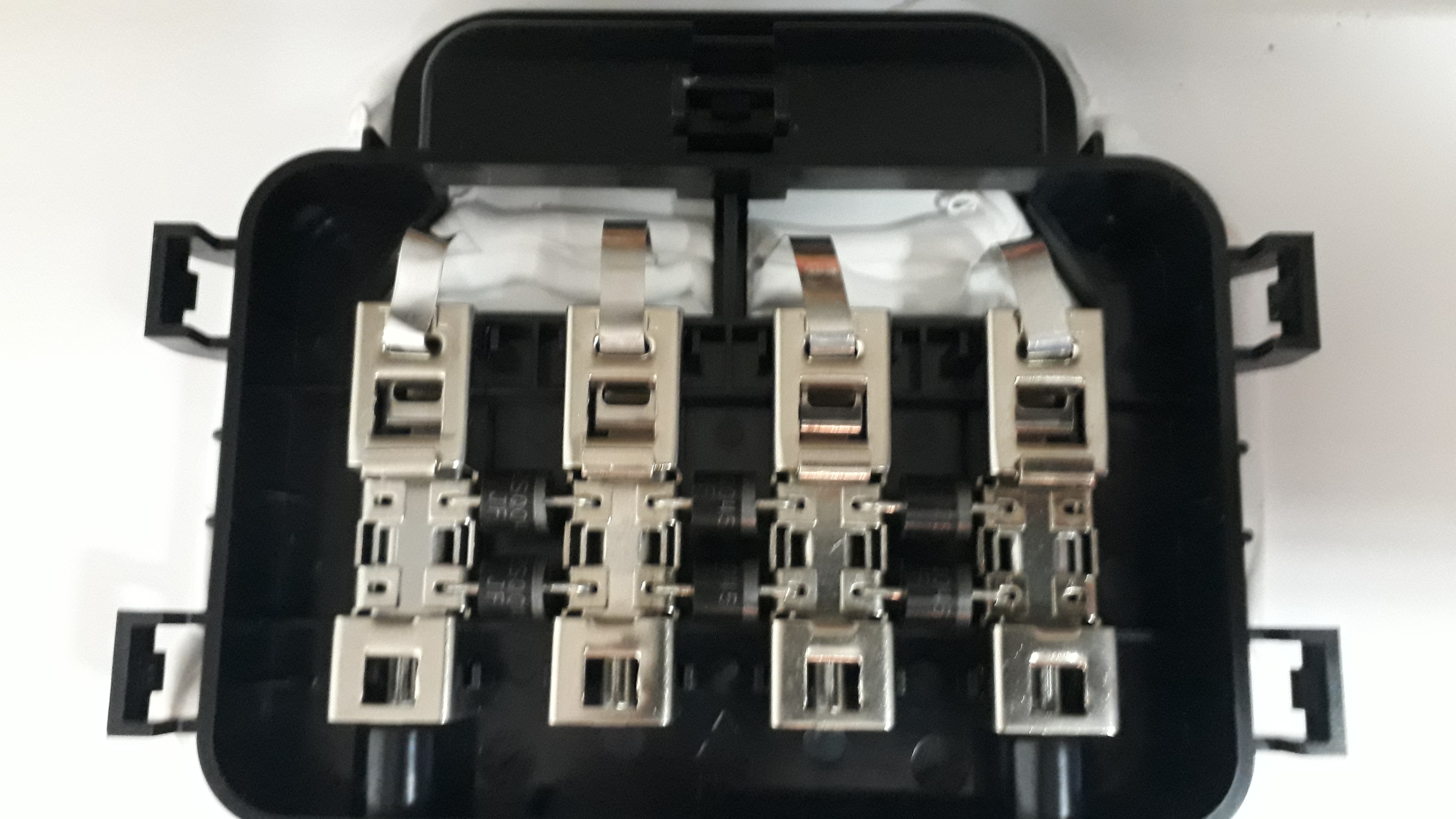 panely jsou nalevo na hromadě a spodní dva byly chvíli pod vodou. Včera jsem je teprve přechodil a spodní se dostaly nahoru. Nevypadaly špatně, tak jsem je utřel do sucha a podíval se do krabiček. Byl jsem překvapen, že v nich bylo sucho. Celkem precizně provedeno: