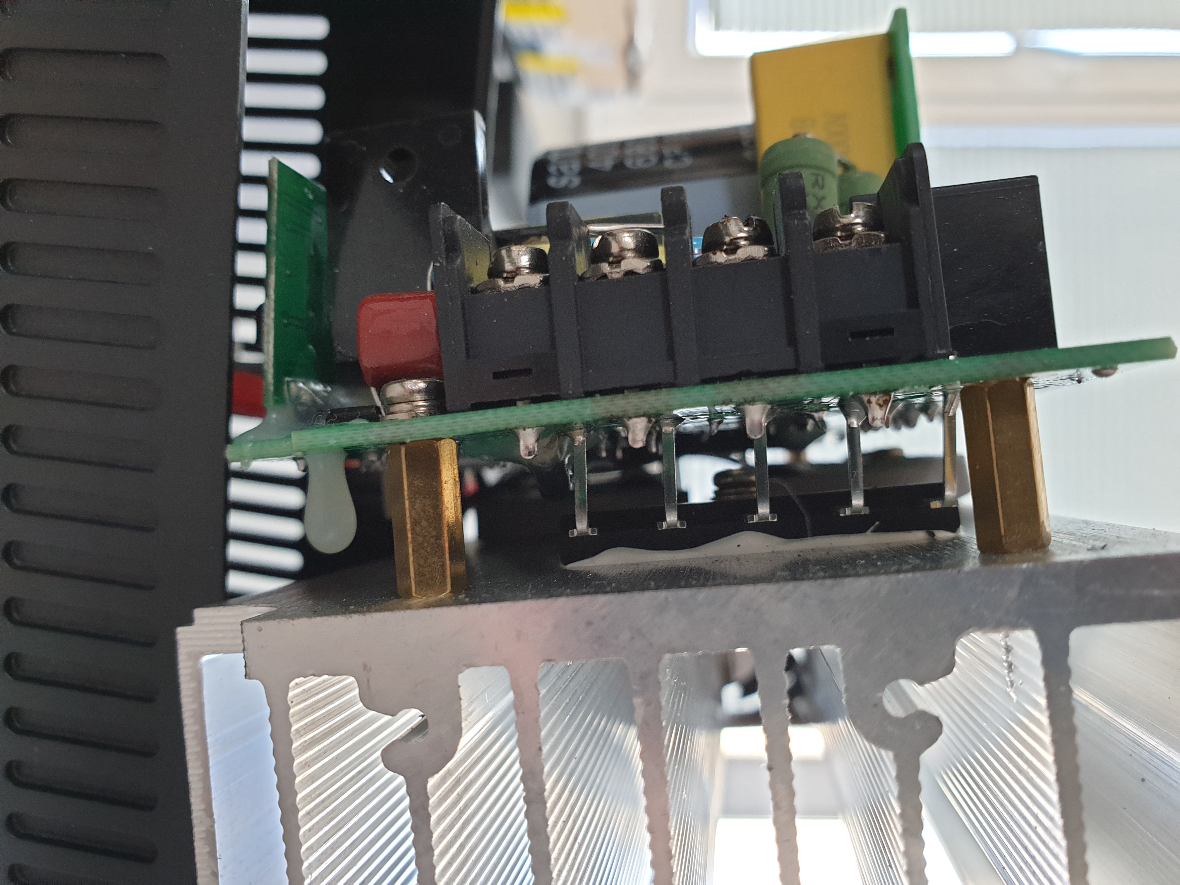 na jeden kondenzátor jeden měnič, na druhý kondenzátor druhý měnič, tak aby to dalo 600V DC (2x 300V DC). Pro plný výkon jsme naměřili 635V ... takže spíš 2x 317,5V, ale to už je detail to je asi 12% výkonu motoru dolů to by se ještě dalo považovat za toleranci, nebo to napětí nastavit přesně na to vyšší, když by to šlo.