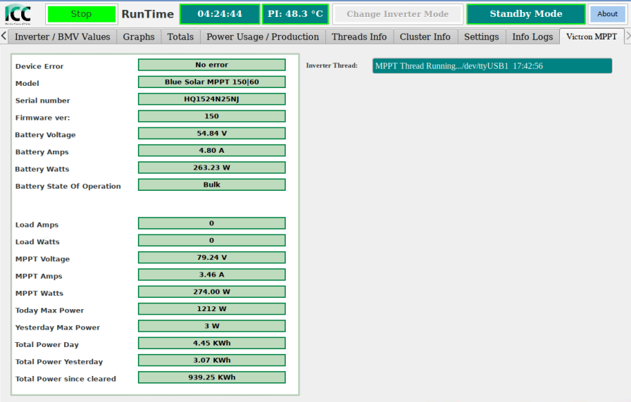 1,77kWp monokryštál + Fangpusun MPPT 150/45, 1,6kWp +Victron MPPT 250/60, 2xStuder XTM4048 + 25kWh LiFePO4, vlastny monitoring na https://www.mms-softec.sk/pip/