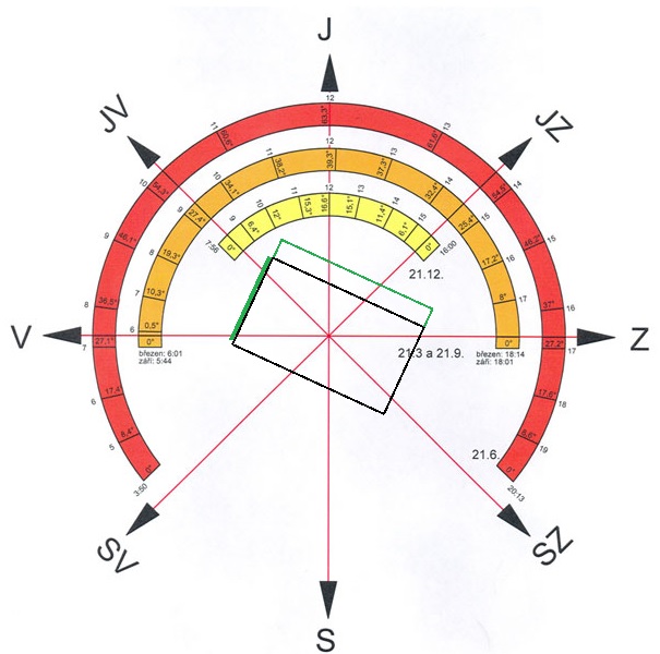 Orientace domu, je vyznačena na obrázku. Zelenou barvou jsou vyznačeny panely. Dále zakoupím 4x regulátor Oplocký/Siton/BEL.