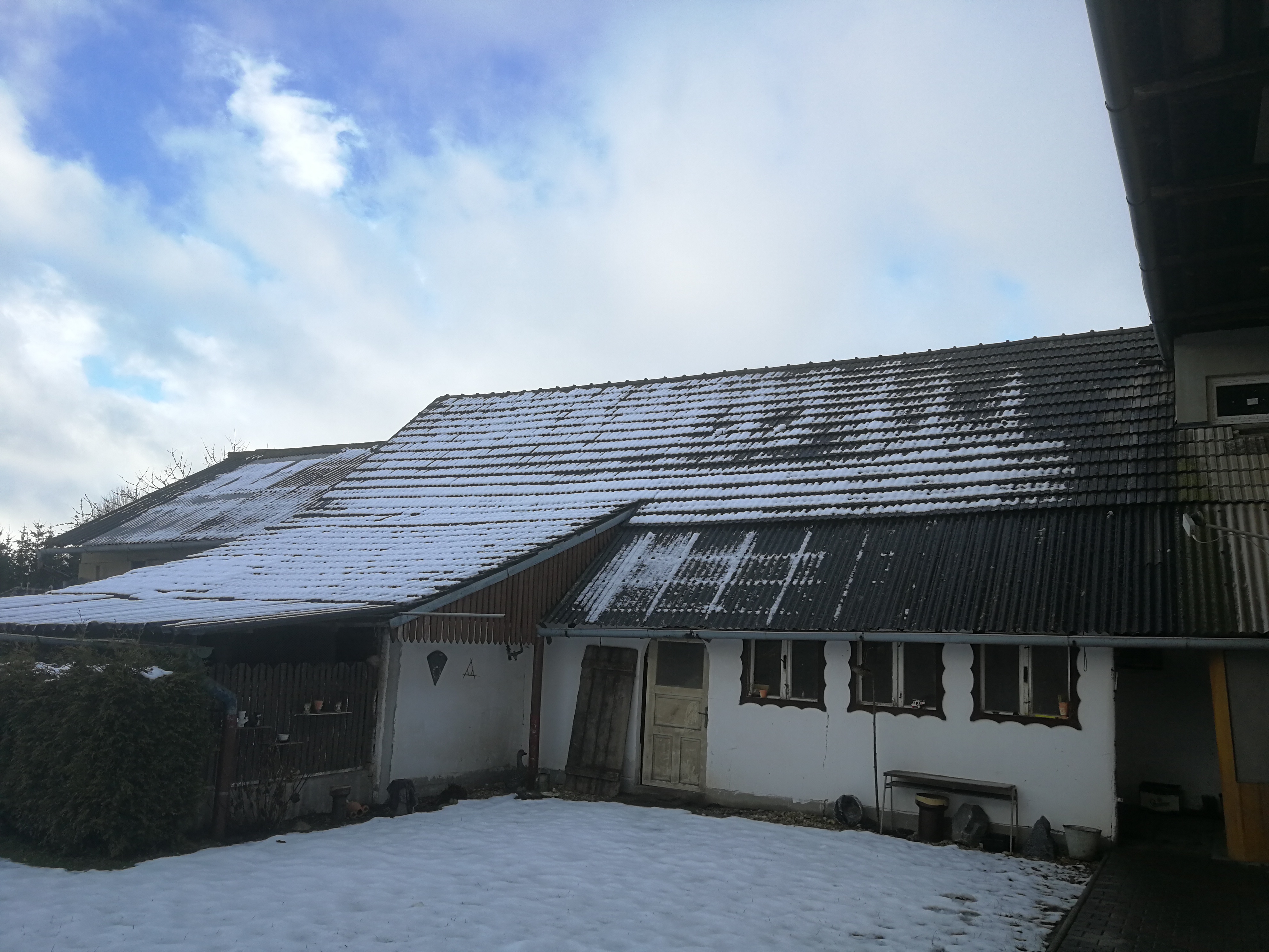 1.fáze rok 2021:Svépomocí rekonstrukce střechy nad dílnou s obytným podkrovím s orientací střechy V a Z se sklonem cca 45-50°, krytina trapézový plech. Zde vznikne první FV pole.