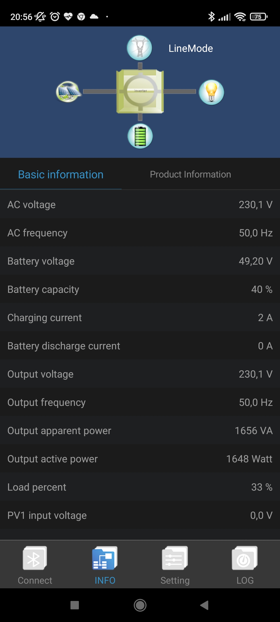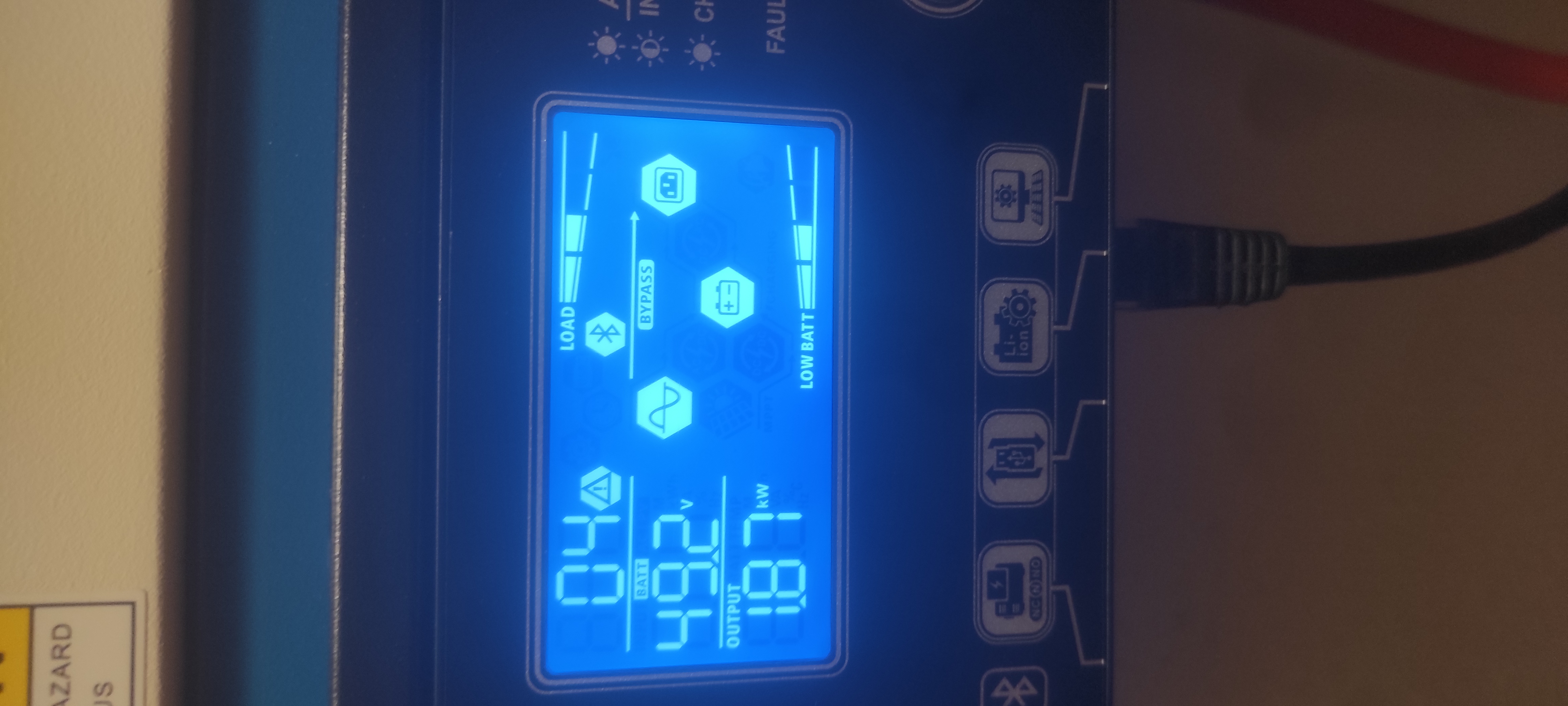 Vidím v tom nastavení, že back to grid i cut-off voltage je na 45 V. On asi přejde na síť a zároveň odpojí baterii, protože dosáhne cut-off limitu? Pak bych chápal i ten alarm. Ten back to grid bych dal o volt výš a zítra se uvidí, až se to nabije.