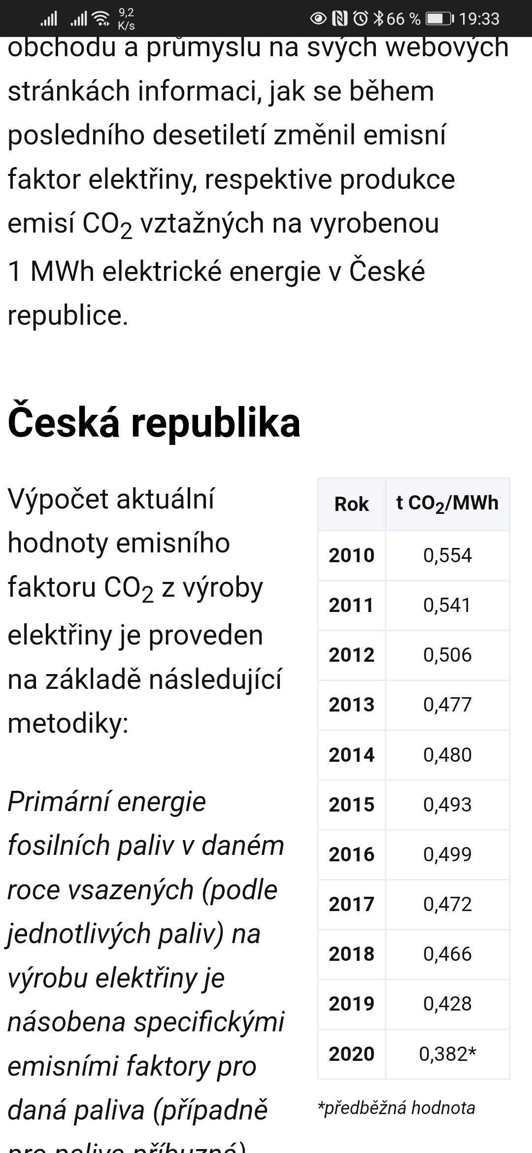 Hezké. Můžu dotaz jak počítáš ušetřené CO2? Našel jsem, že koeficient pro CZ je 0.43tCO2/1MWh a to mi nějak nevychází. Z čeho jsi čerpal koeficient? Jinak rozhraní super.