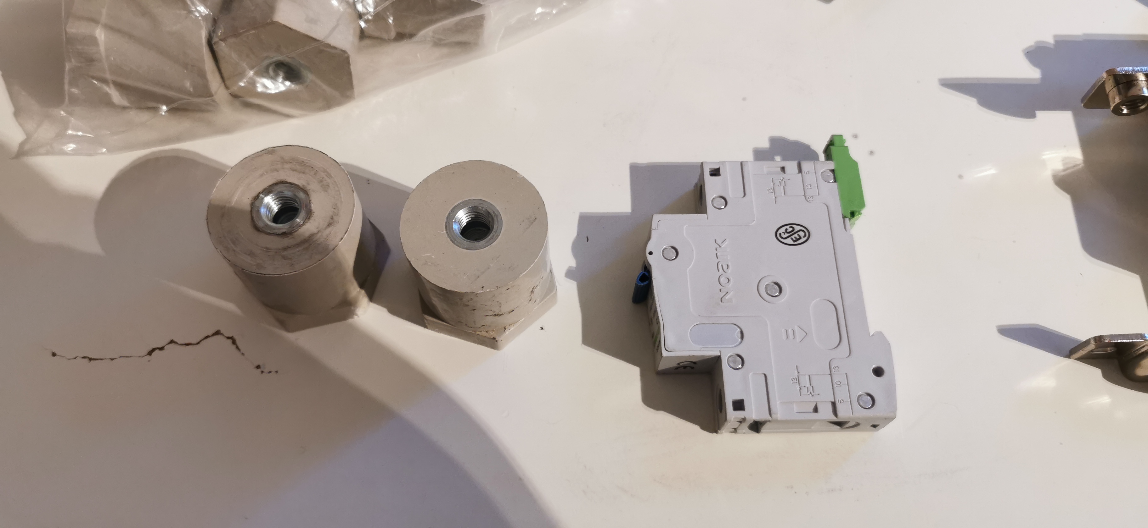 Ještě jsem zapomněl vám poslat ty distanční sloupky na šíny. Nechce to někdo na busbary? Je to pořádnej materiál, nic se nebude mrdlat, když na to chytíte 50tku pásovinu.