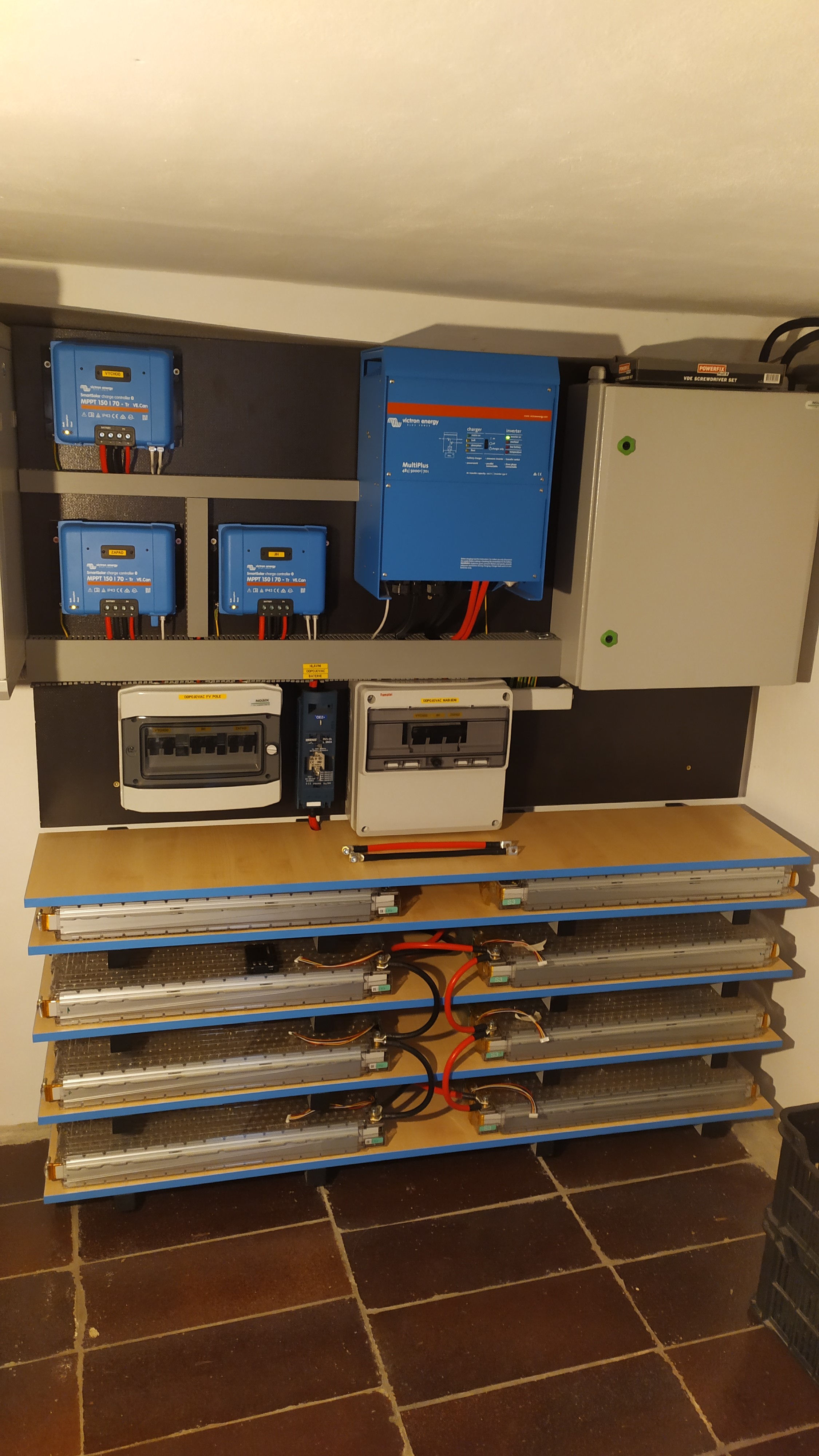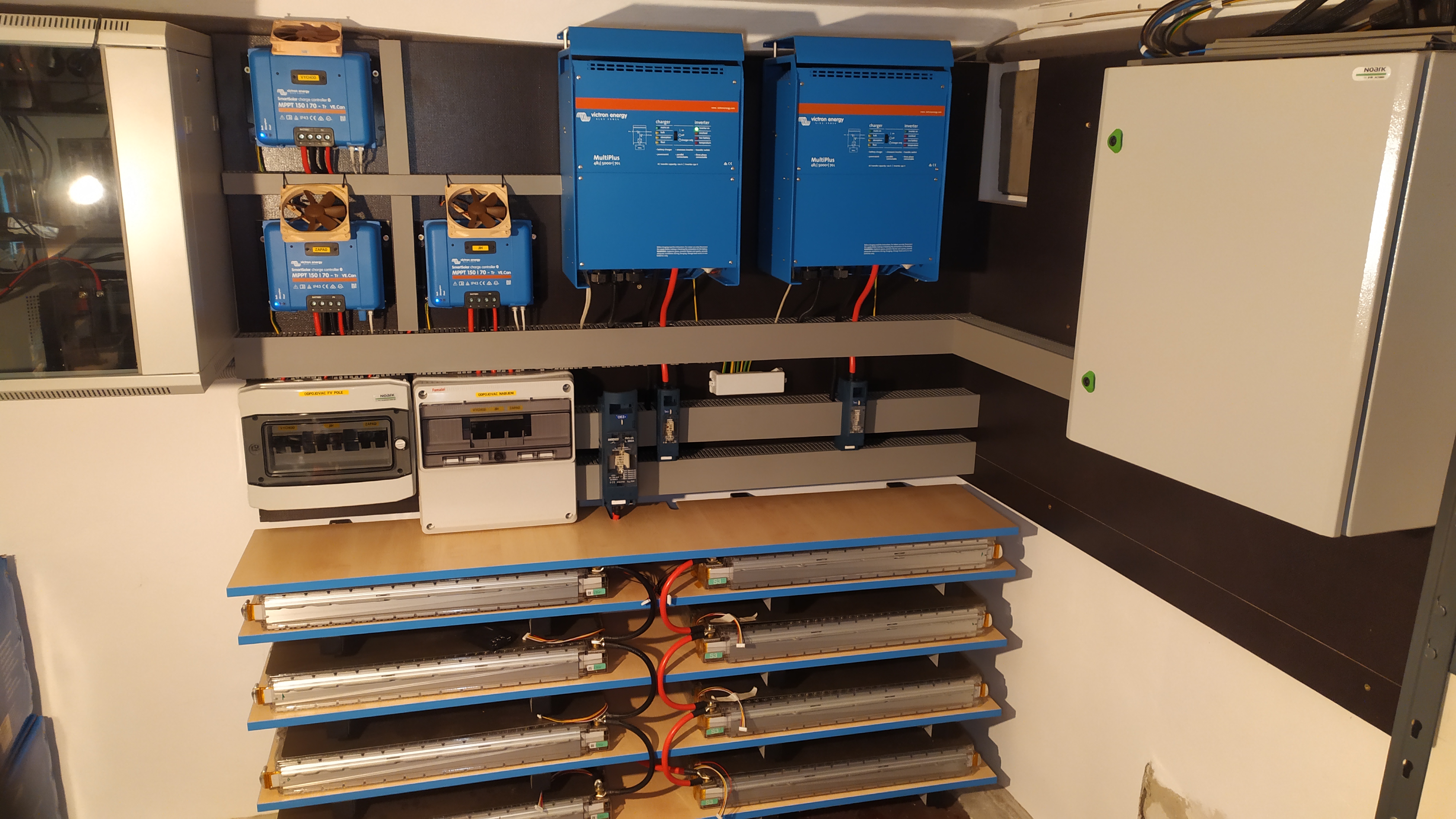 ostrov skoro 8kWp neustále ve stádiu zrodu: smartshunt(ex WBJR), MPPT150/45, MPPT 250/100(ex midnitesolar 150 clasic lite), 16S a různě P cca 340Ah Winston, MP II 5000,( ex Powerjack 8kW, ex samodomo cca 4kW). 48V DC rozvody a spotřebiče.