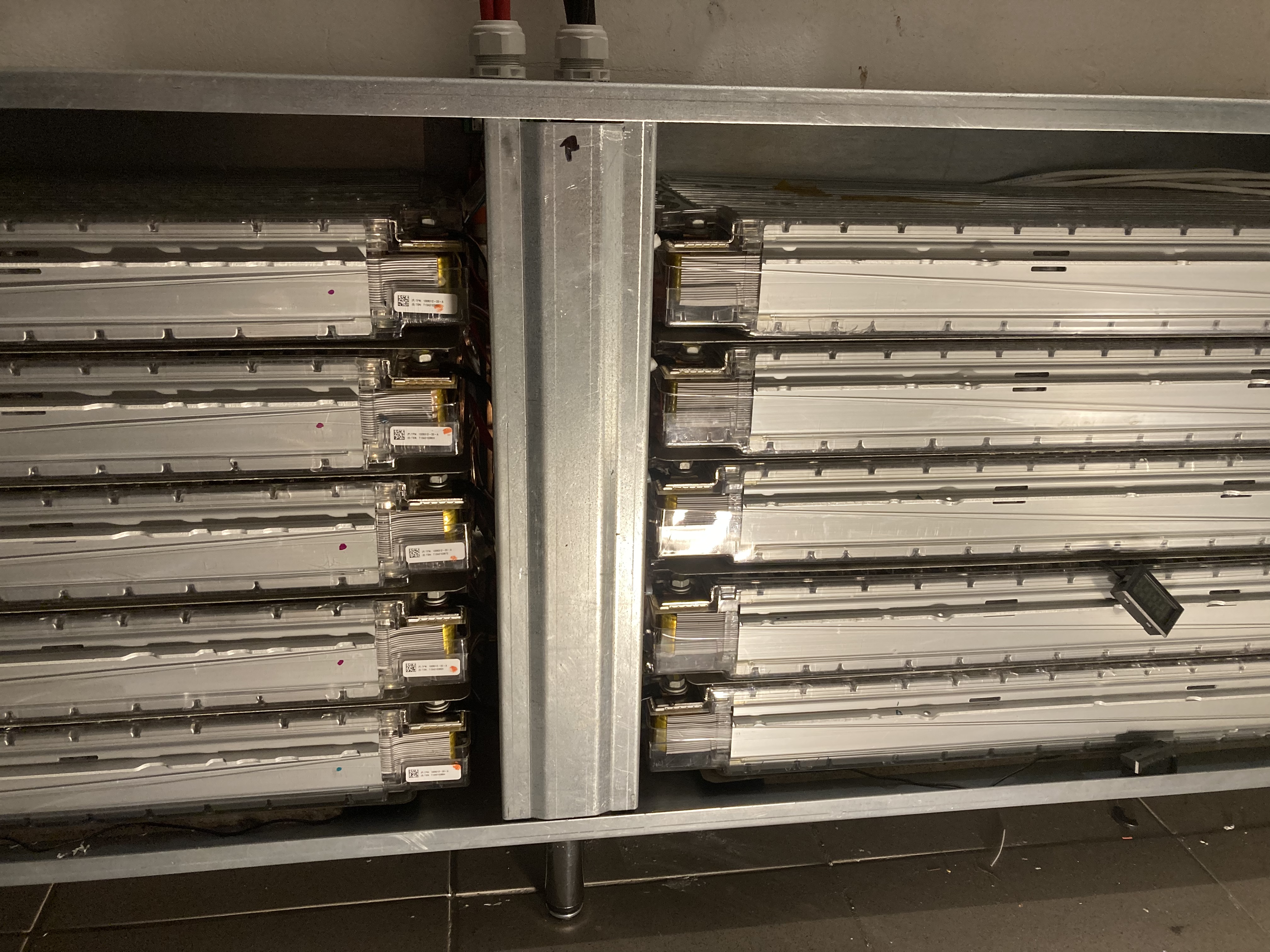 Diskuze se věnuje zakázkové plechovoželezné skriňobedni určené pro 24V Tesla moduly s rozměry 50x150x35 cm. Uživatel řeší možnosti chlazení – pasivní vzduchové, aktivní vzduchové s ventilátory nebo aktivní vodní chlazení s termostatem a čerpadlem. Skriňobedňa je vybavena digitálními teploměry, BMS moduly a dalšími prvky pro monitorování teploty a bezpečný provoz. Zmiňuje se i o konstrukčních detailech jako závěsy, nožičky, zámky a vnitřní izolace mezi moduly.
