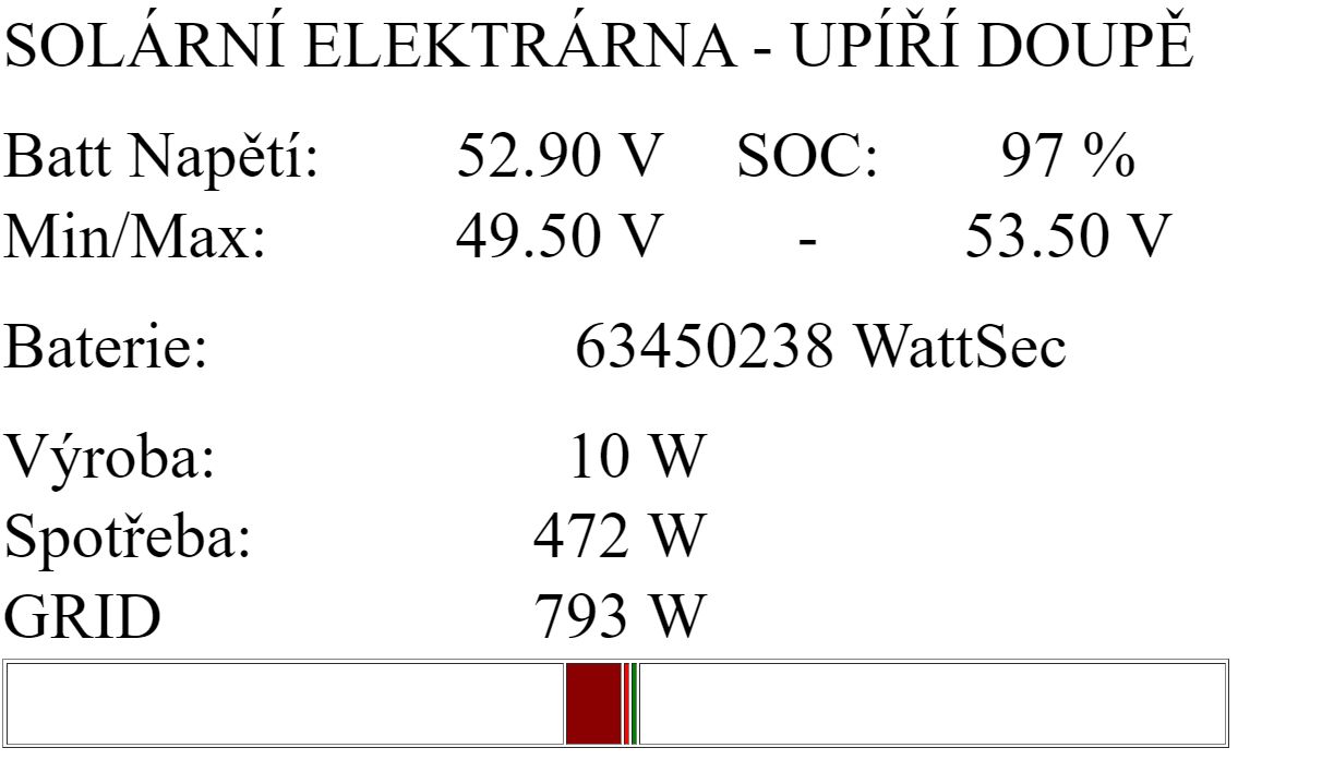 li ion 350 Ah@58V, venus@rpi3+, celkem instalováno 12,36 kWp, 460 m.n.m.