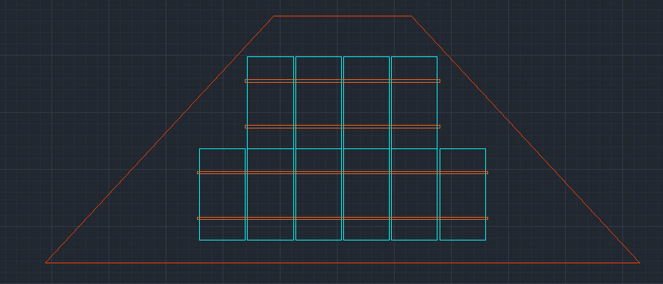 Tak jsem změřil střechu úplně přesně a takto by to vyšlo, s tím, že panely jsou nakresleny jako přesně 2x1 a ne 2.1, 1.05 a spojky nejsou taky vloženy mezi panely. A podle nákresu by to asi tedy opravdu vyšlo. Ale panely budou končit 10cm nad koncem tašek. Dům je bungalov, takže to není velká výška k zemi, ale stejně, až napadne nějaký sníh a sesune se, tak asi přeskočí okap a bude mi padat přímo na auto, které parkuje u domu. Nebo byste řekli, že se bojím zbytečně? To byl důvod, proč jsem bral, že se mi ty 4 panely nahoru nevejdou, protože jsem spodní řadu nechtěl tolik sesunout dolů. V mém původním návrhu se víc využije šíře střechy, ale dole zůstane stále odestup od konce tašek cca 40 cm, ne 10cm.