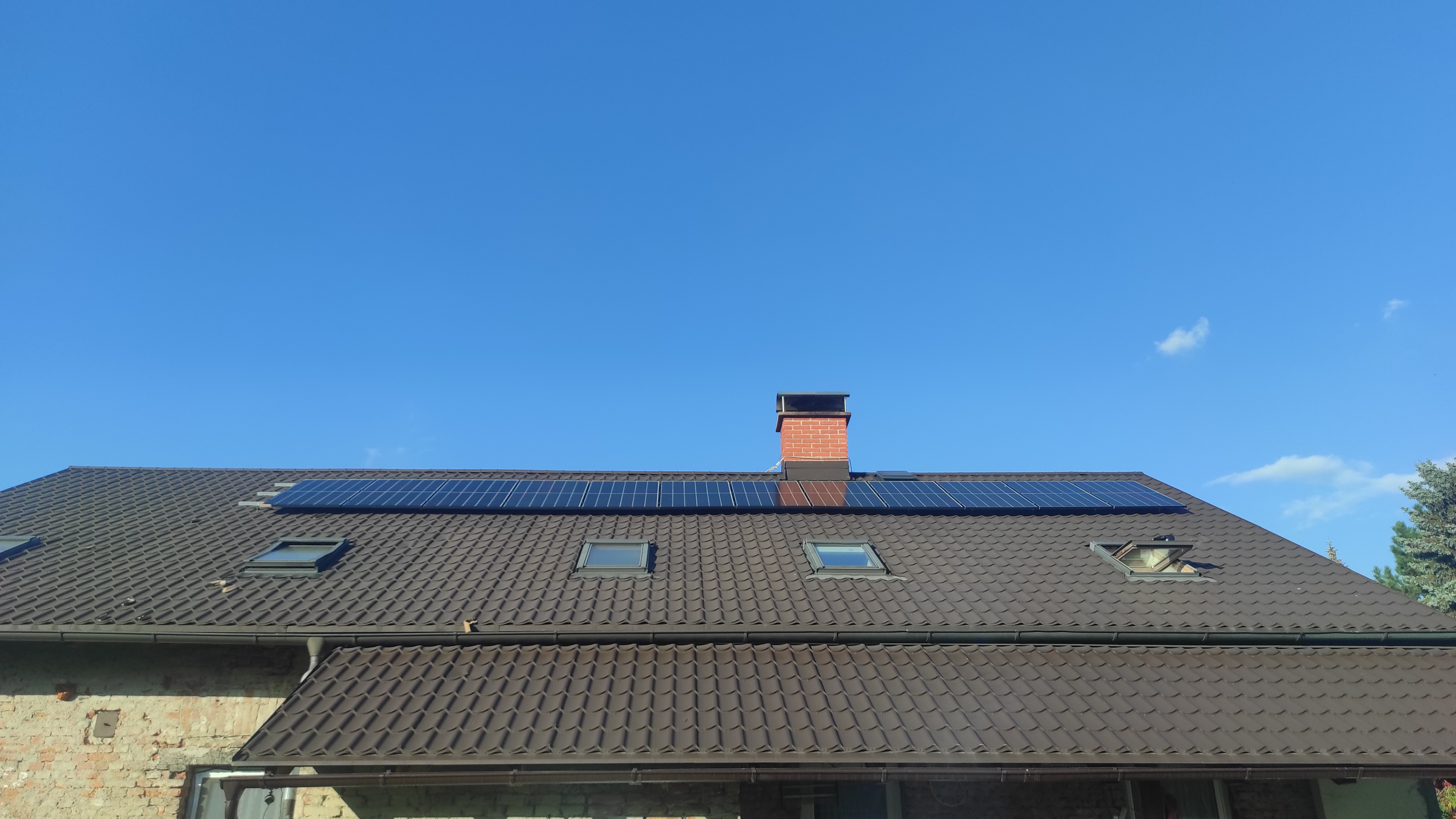 13,38 kWp: 9850 Wp Jih, 2040 Wp Východ, 1490 Wp Západ