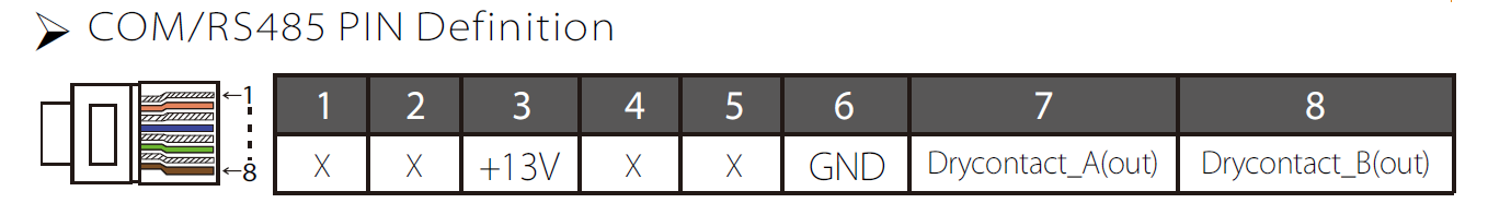 podíval jsem se do manuálu k měniči a pokud jsem to správně pochopil, tak COM port obsahuje dva bezpotencialové kontakty A a B. Kontakt A je mezi piny 1 a 7, kontakt B je mezi piny 2 a 8 a to zapojení s piny 7 a 8 se týká zapojení s adaptér boxem.