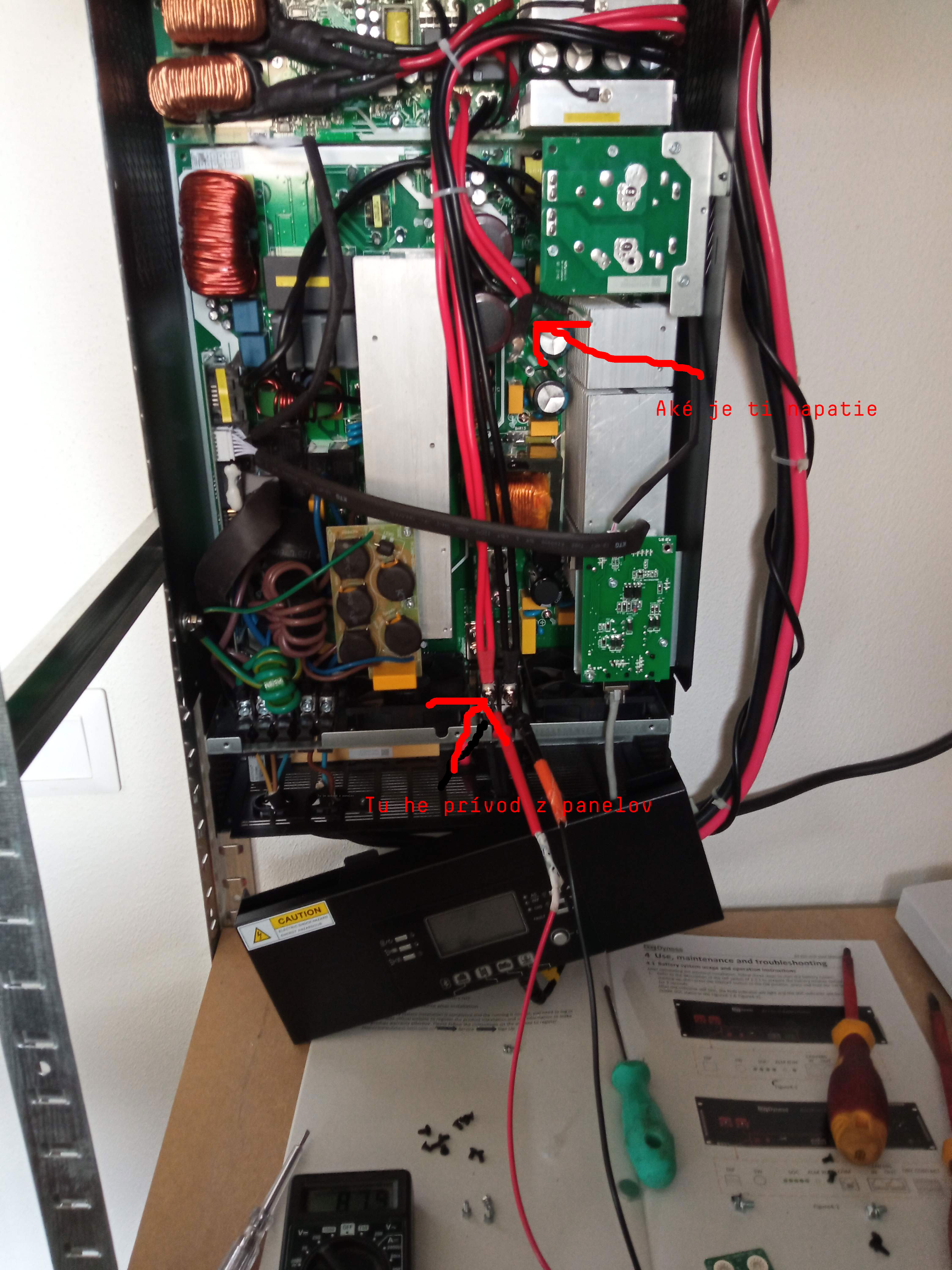 Ještě Kinga nemám zapojeného (čekám na baterky), ale tohle určitě nevyzkouším. Živému Kingovi odpojit baterky bych si netroufl a doufám, že mi to ani BMS nikdy neudělá.rendy1 píše:Zaujímalo by ma, aké napatie je na pôvodnej mppt doske na výstupe, na tých krátkych kábloch po odpojení od batérie...