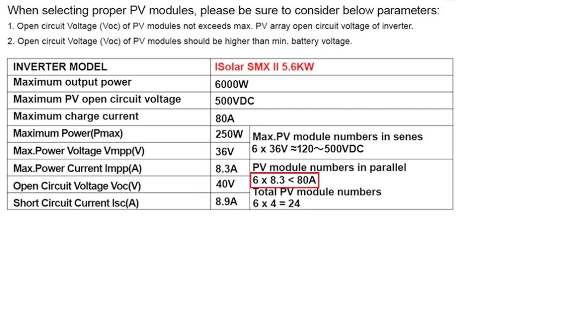 Pokud budeš mít "krátké" stringy s napětím pouze kolem 150 V, nedostaneš z toho více než 22A * 150V = 3 300W. Ani když těch stringů budeš mít deset paralelně. Potřebuješ mppt napětí stringu(ů) nad 300 V, protože 300 * 22 = 6 600 W.