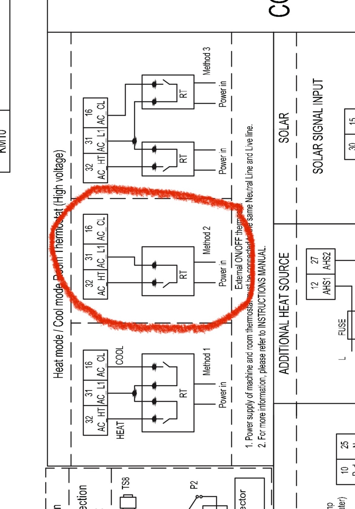 Co si vybavuji, jsou tam 2 vstupy pro termostat. 1 vysokonapěťový 230V takže spínáš fázi - proto asi ta klema. A druhý nízkonapěťový - tím se podle hodnoty VDC definuje, jestli má topit nebo chladit, plus nějaké 2 zóny teplot apod. Chce to pročíst.