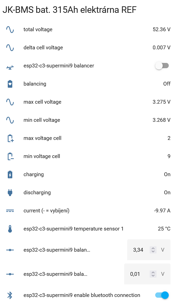 Monitoring BMS JBD přes Home Assistant
