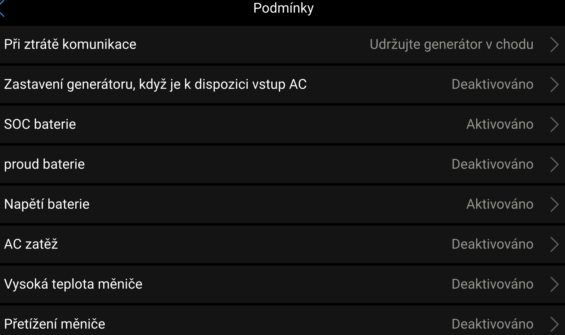 Pokud dlouhodobě, např. v zimě nenabiješ baterku na 100% a tím pádem se neprovede reset SoC na 100%, tak se údaj SoC rozchází se skutečností. Může to dojít do stavu, že systém si myslí, že je SoC dost vysoké, přitom je baterka prázdná. Proto mám nastaveno i napětí. Pro připojení sítě (start generátoru) stačí 1 z podmínek, nemusí být splněny obě zároveň.Radar píše: ned črc 06, 2025 6:29 ampibi: ale takto nemůže přece podmínka podle napětí zafungovat...