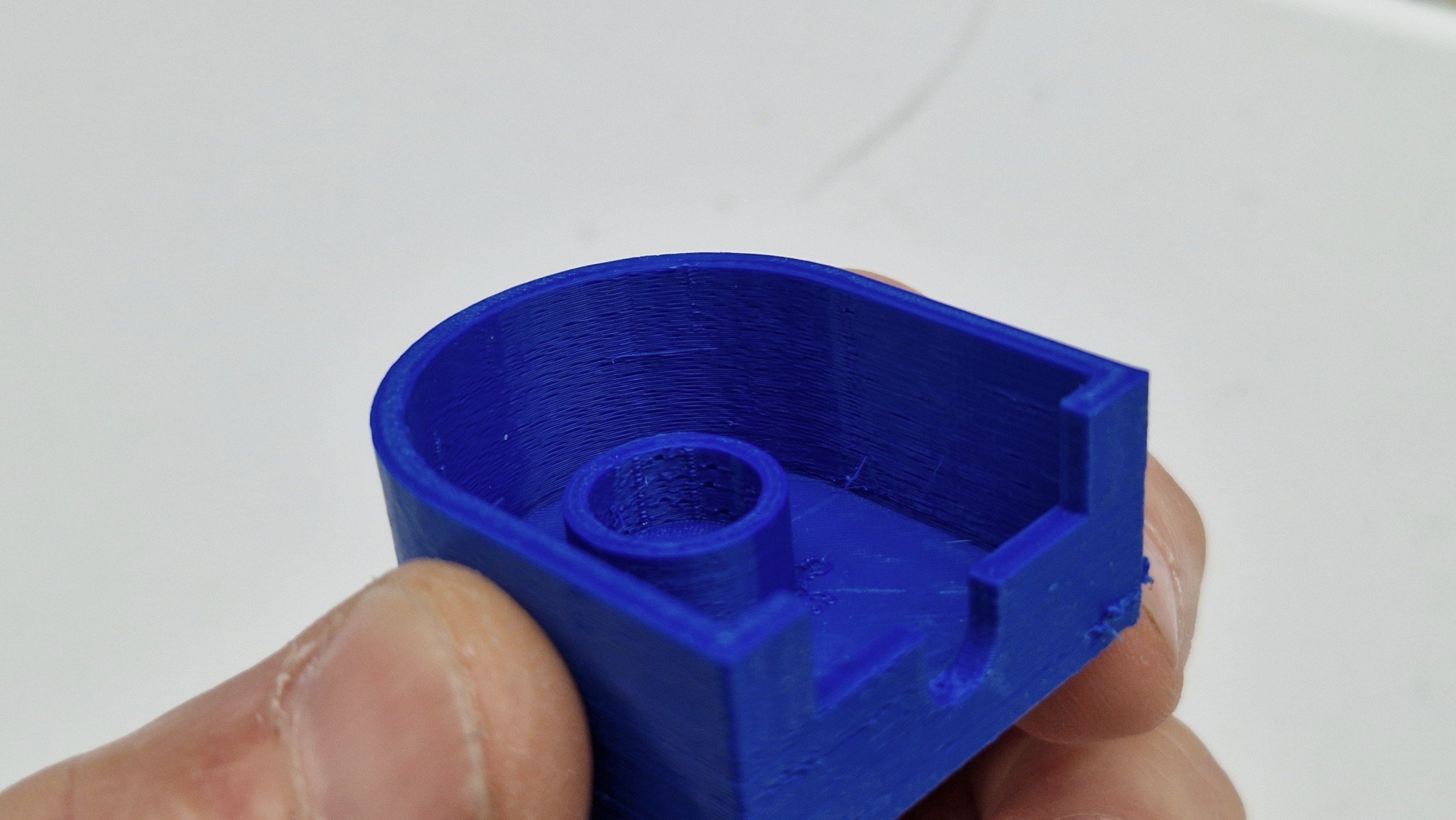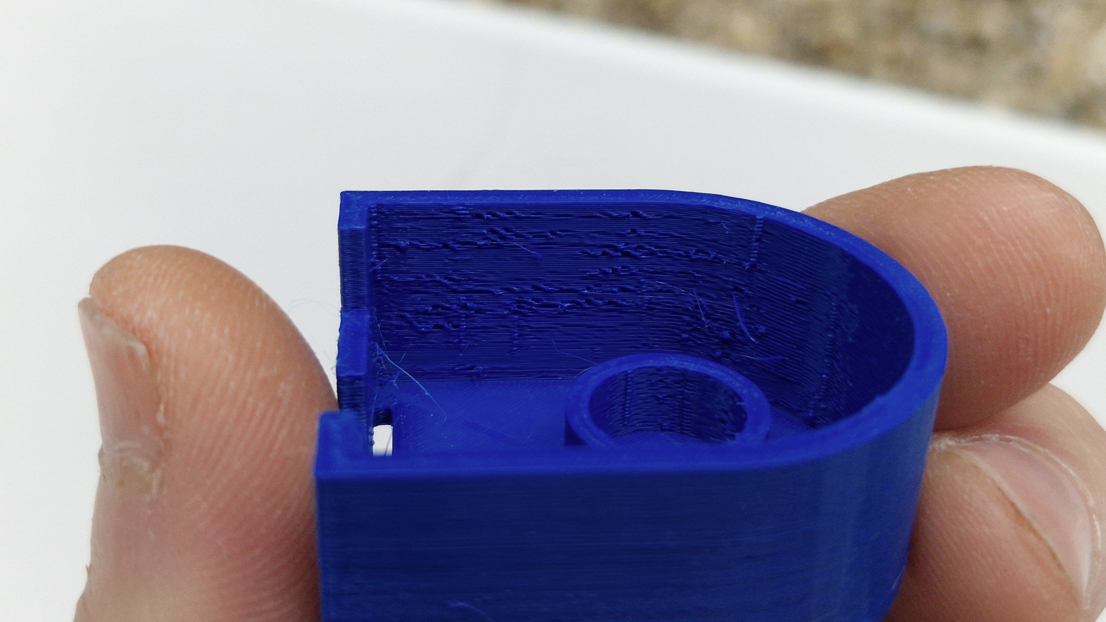 Ahojte, čo zmeniť v nastaveniach, keď je jedna vnútorná strana taká škaredá a druhá je relatívne OK a vonkajšie sú tiež pekné hladké? PETG, default nastavenia, mimo infill ktorý som dal na 100%.