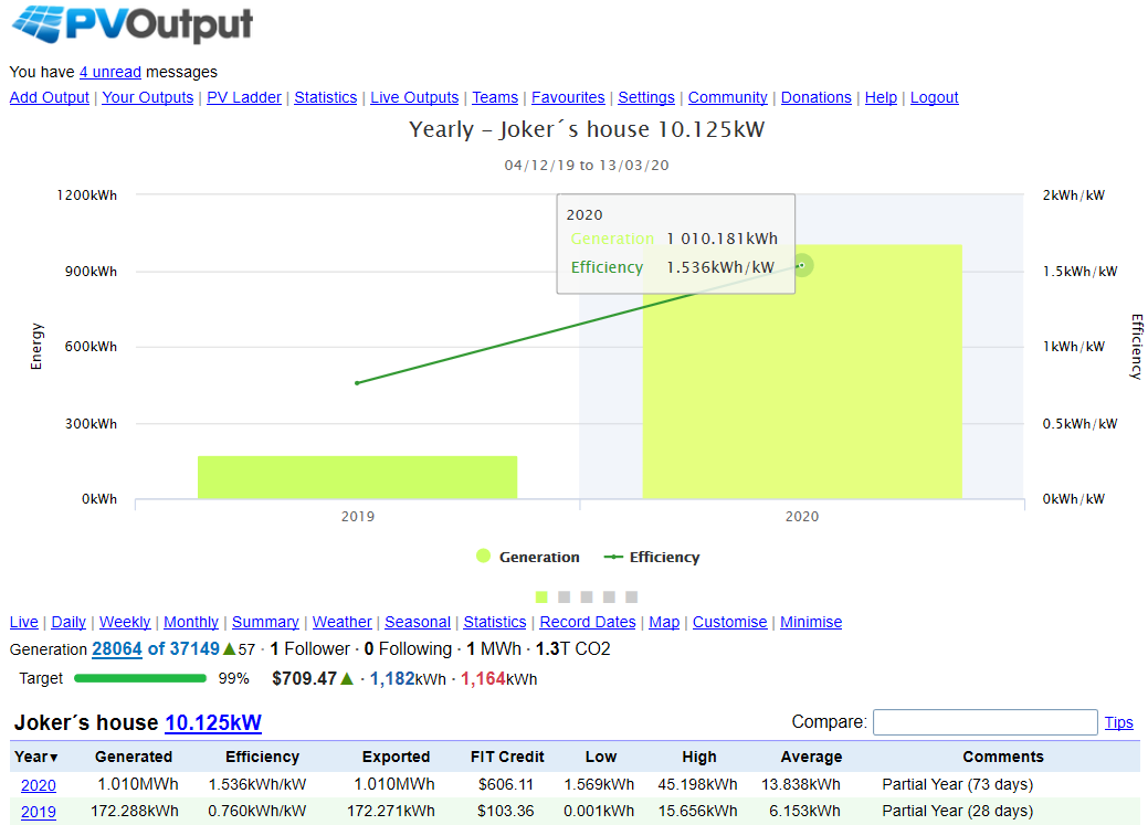 Dobíjení baterií mi letos vzalo 56 kWh ze sítě ( 2 x ekvalizace ) a testování klimy a GBO. Přehled o tom kolik beru ze sítě nevím, to omrknu až v srpnu při vyúčtování.
