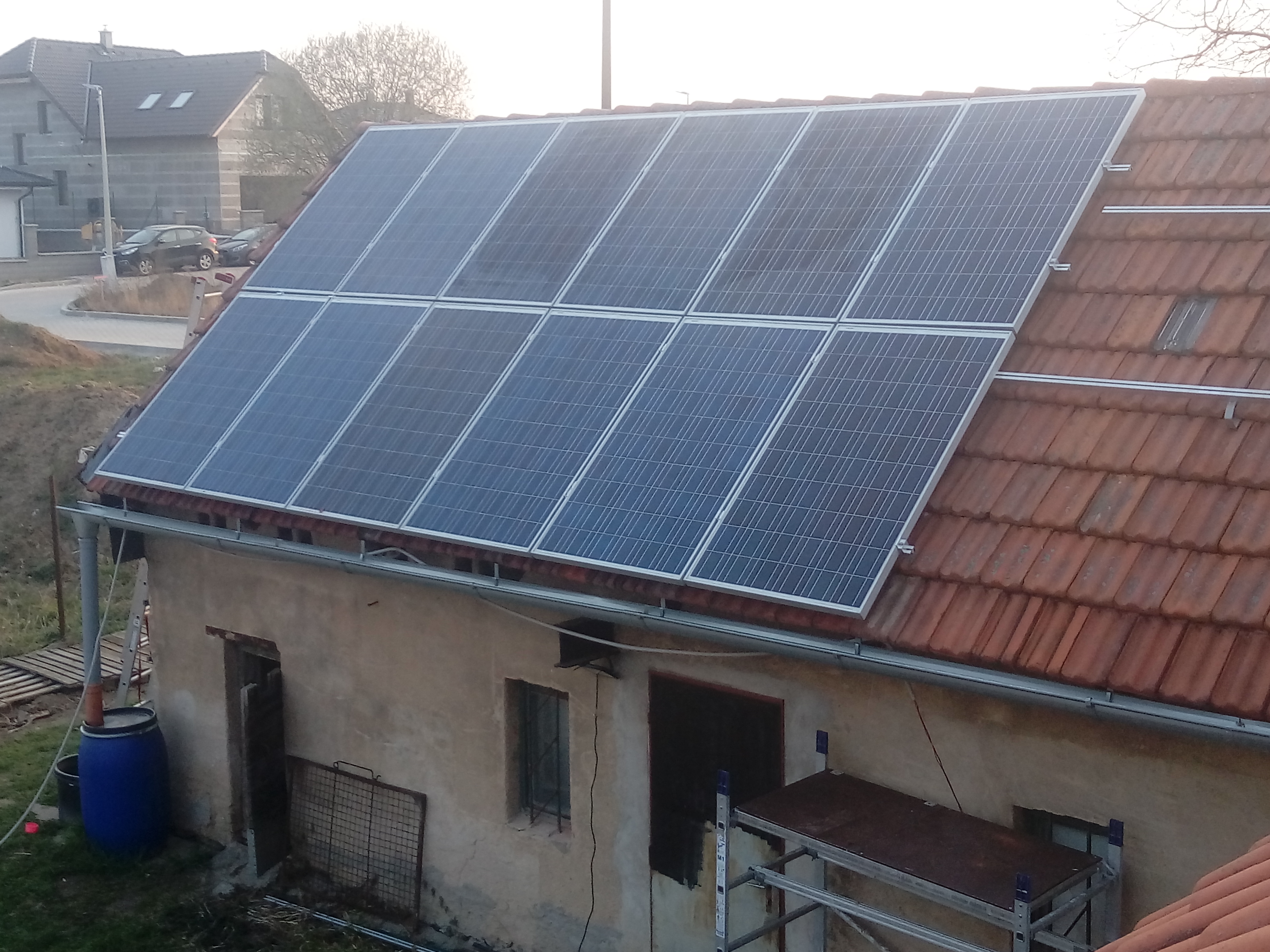 Pouzil jsem klasicke usporadani profily alupa 6m drzaky dek trade nh2 tusim kazdy string az k rozvadeci. Nerez srouby a origo prichytky. Panely klasika znojmo jinka 225Wp. Celkovy instalovany vykon stoupnul o 6 panelu cili pokud dobre pocitam tak mame 12 jih 12 vychod 12 zapad fasada 6 a jih10stupnu9 cili 51 panelu.
