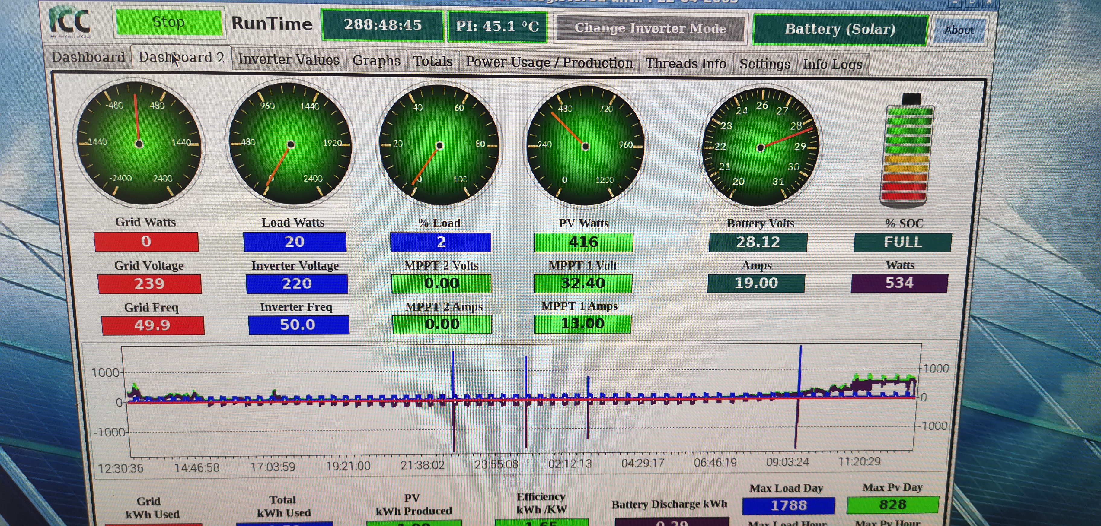 1,77kWp monokryštál + Fangpusun MPPT 150/45, 1,6kWp +Victron MPPT 250/60, 2xStuder XTM4048 + 25kWh LiFePO4, vlastny monitoring na https://www.mms-softec.sk/pip/