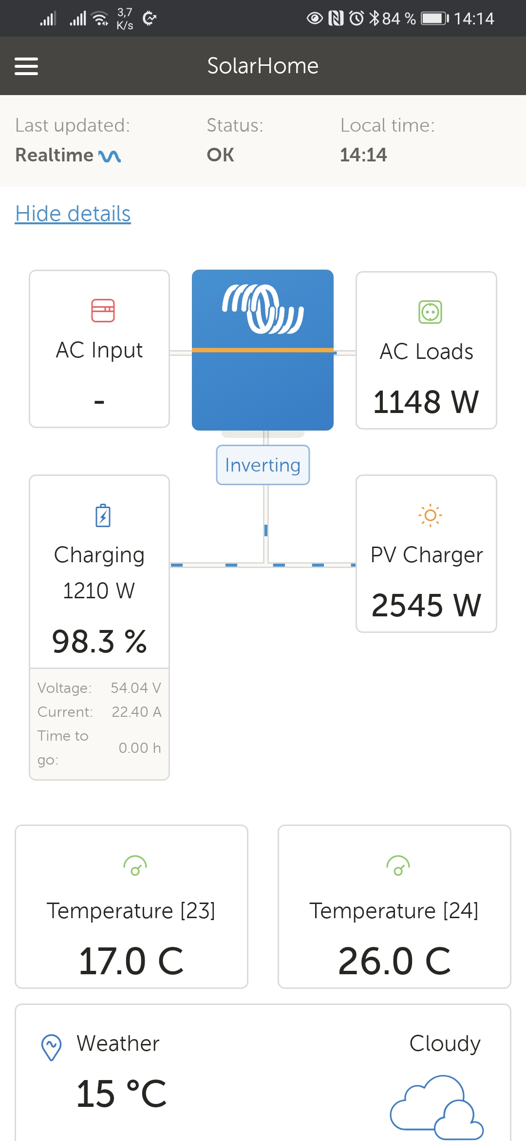 Hele je to super, neměnil bych. Respektive mám na stěně doma telefon trvale na nabíječce s trvale zaplým displayem a puštěným VRM a když přijdu domu, nebo jdu okolo, tak juknu abych nemusel vytahovat phone. Osobně bych už sel do multiplus2 5000VA, ale jinak super mašinka.
