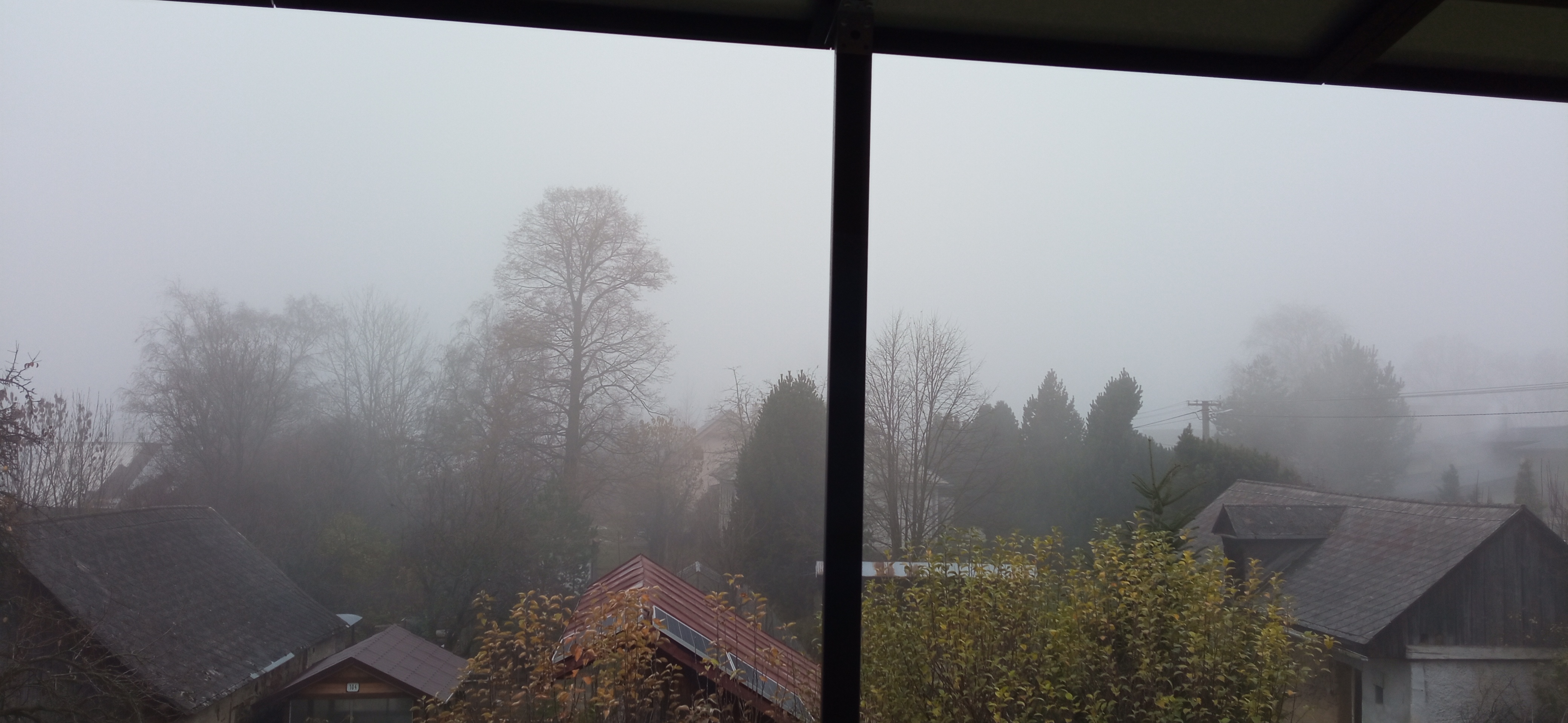 Baterka se nabíjí už týden. Dnes to taky nedá, je tam 88% a oblohu právě zakryl uhelný kouř valící se z komínů všech přilehlých stavení. Achjo.