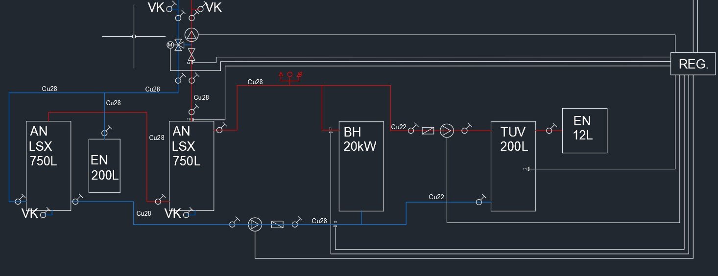 Co som si nastudoval tak vacsina ludi ma zapojene dve nadrze do serie cize prva AN vyvod zo spodnej casti je napojeny do vrchu druhej AN a spodok druhej AN je napojeny na spiatocku kotla.Tym by malo byt zaistene ze sa nabije najskor prva AN z ktorej je aj vyvod do radiatorov a potom sa nahreje druha AN.Chcel by som vediet vase skusenosti so zapojenim kto to tak ma alebo ci by bolo vhodnejsie ine zapojenie.Dalsi problem vydim v tom ze budu tie AN od seba daleko a teda asi by bolo vhodne pouzit medzi nimy dalsie cerpadlo alebo zdvihnut otacky tomu terajsiemu na kotlovom okruhu aby pretlacilo dve nadrze?...