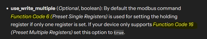 A ESPhome docu spomína parameter use_write_multiple, ale len pre modbus switch... https://esphome.io/components/switch/mo ... -variables