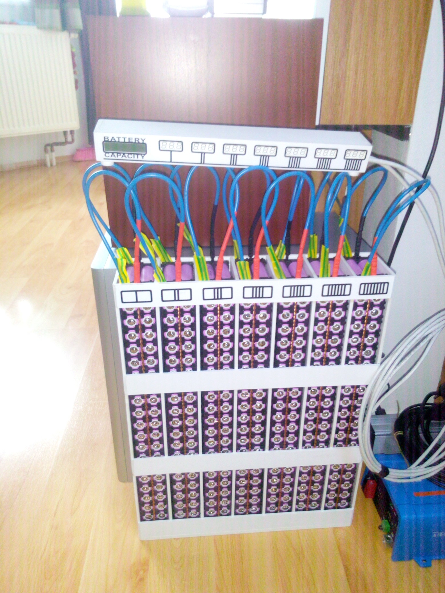 4830W+5*PWM+3MPPT,18650 pack 7S/60P -28,20V- 4.2kWh+18ks 40Ah/+3ks 16P18650 (Mitsubishi Outlander) 3 kWh+ pack 26650 7S/6P - 0,75kWh+7ks 60Ah (BMWi3) 1,5kWh + testovacia LTO -11*12Ah.+ 7*150Ah od pimpongáča 3,8kWh + 7* 180Ah od pimpongáča 4,6kWh ,Victron VE.Direct 375VA 24V,Victron VE.Direct 1200VA 24V,NoNAME pimpongáč 4kW, "hybrid 3,8kW pimpongač