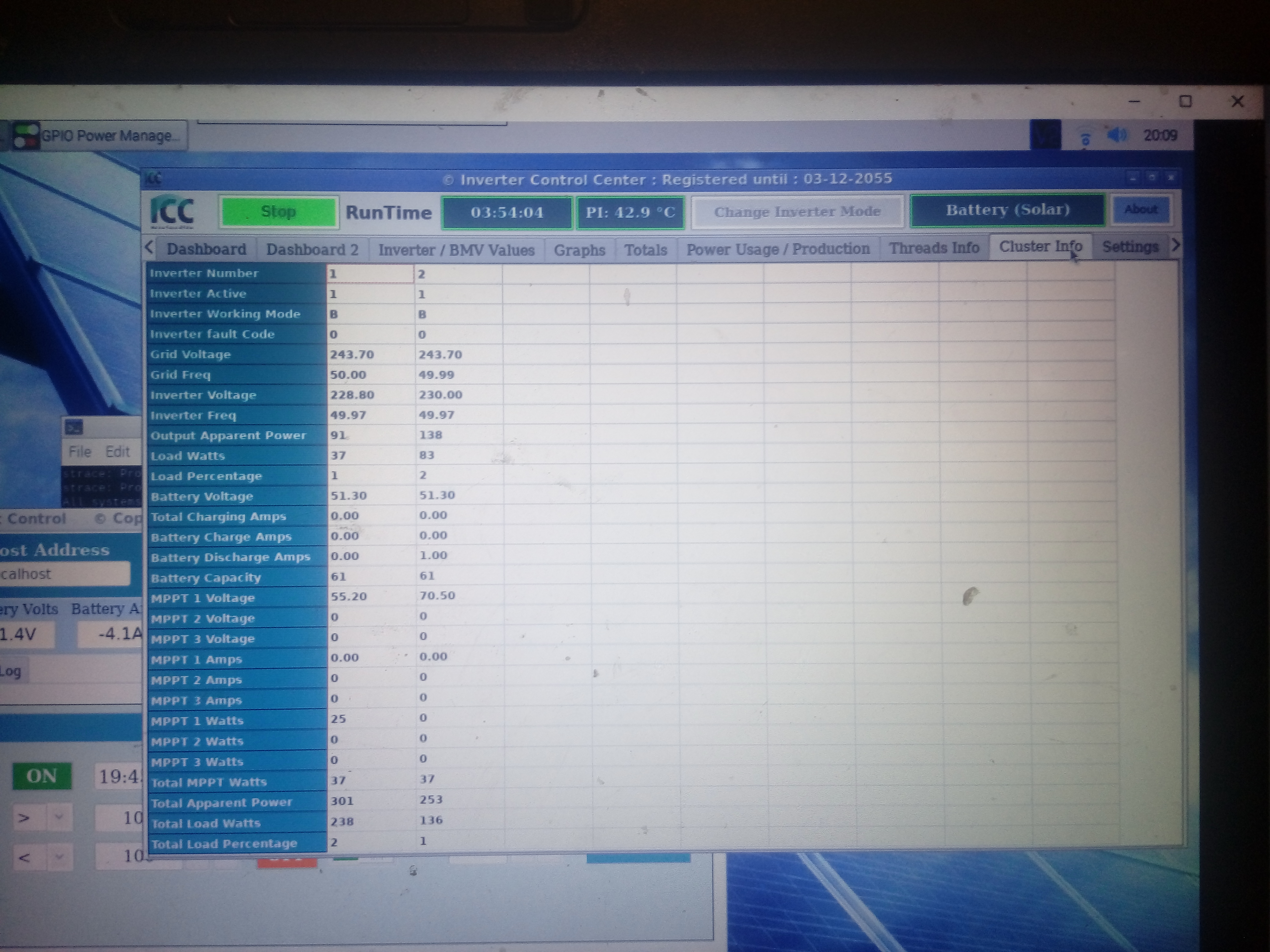 Dnes se mi povedlo doladit vypnutí střídače na noc ( kdy je evidentní že nebude vyšší výkon než 5 kW ) takže na základě PV výkonu vypnu externím relé ( ovládáno přes ICC a GPIO ) se střídač za splnění podmínky vypnul.
