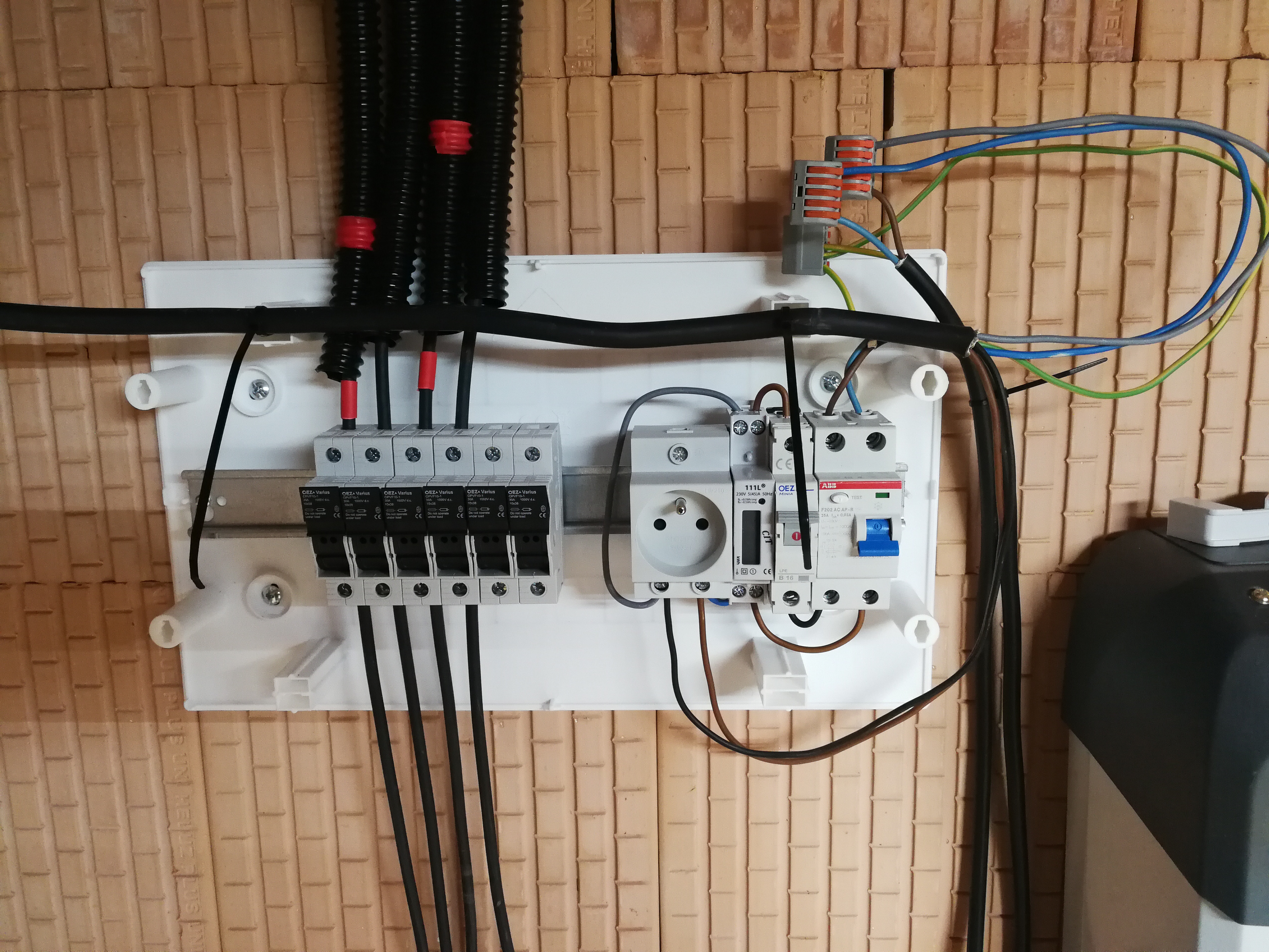 na cca 3-4 mesice. Je to všechno namontované na pudě než se dodělá dílna pod ní. kam se to přesune natrvalo. Na pudě zustane akorat první rozvaděč kam k pojitkám ještě dám 2x svodič.