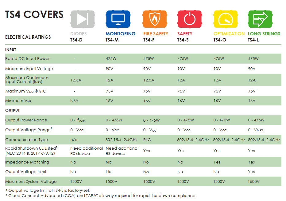 Toto je guide k integrovaným optimizérům přímo v panelech, ale stejnou jmennou konvenci používají i optimizéry samotné. Např. TS4-A-O = optimize, TS4-A-M = monitoring. Každopádně, před nákupem doporučuji detailně prostudovat dokumentaci, která je naštěstí veřejně dostupná a velmi dobře zpracovaná, včetně ukázkových projektů.