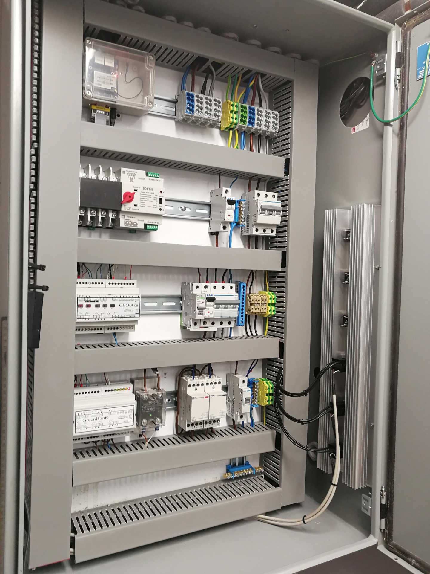Tak jsem včera s velkou slávou natahal kabely, vystrojil rozvaděč a zprovoznil GB aku s fázově řízenými SSR. Na každé fázi je zapojeno jen 1,0kW těleso. Dnes konečně slunečno a přišlo velké zklamání. Regulace sice funguje skvěle jak na vytěžování, tak i omezení proudu do baterie, ale zvuky co se linou z XTMek se mi vůbec nelíbí. Nelíbí se mi až tak, že se mi to nechce nechávat v provozu. Dokonce se to projevuje na zářivkách, zejména na malém procentu otevření SSR.