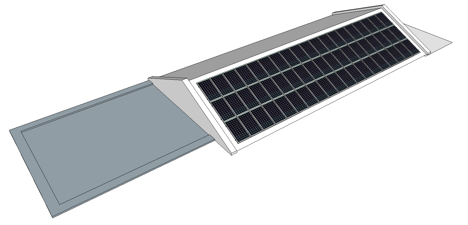 Namodeloval jsem všechny střechy domu kde se teď v 1. etapě dají instalovat panely. 2. etapu zatím neřeším = střecha dílny + letní kuchyně + 70 metrový plot jížním směrem.