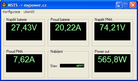 Srdecna vdaka prochazka85 za upravu tvojej aplikacie pre veternu turbinu! Chodi vyborne, ocenujem aj moznost variability frekvencie nacitavania dat z TriStaru. Hodi sa pri nestabilnom vetre. Mam aj jednu otazku. Zobrazenie odovzdavaneho vykonu je s dvomi desatinnymi miestami. Pri trojcifernom cisle pred desatinnymi miestami sa to tam este ako tak zmesti. Ako je to osetrene pri vykone nad 1000W? Samozrejme desatinne miesta vlastne vobec nepotrebujem.