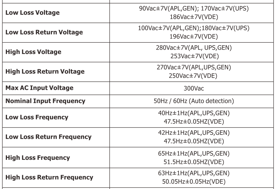 To s VDE4105 je rozsah napětí a kmitočet které považuje měnič na AC IN za dobré.