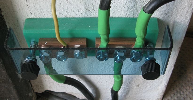 bych tu přepážku dal také,jsou fakt blízko u sebe a například zlomyslně spadlá matka umí pobavit.Tedy pokud jsou ty sběrny na rozdílných potenciálech.A ty matičky svorníků aby se nedotýkaly sběren (zapustit?).Jestli už to není.