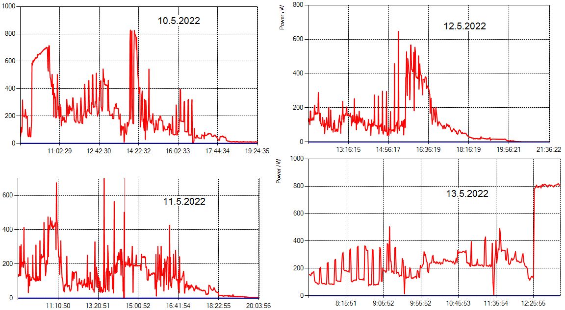 A taky vytíženost byla problém - ty největší odběry dělala pračka.
