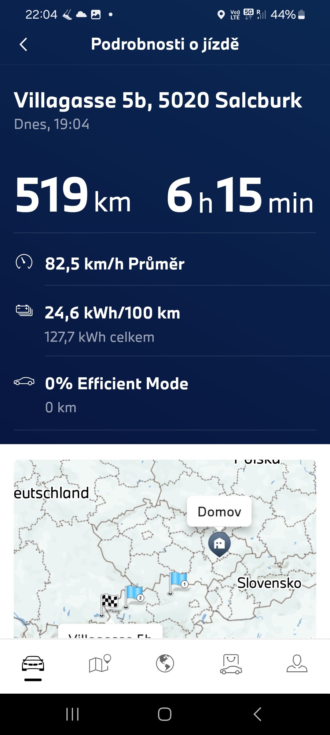 Jo jedno nabití, ale musíš vědět že na konci čeká šlauf s nabíječkou. Do Salzburgu bych si to lajsnul, ale do menšího města s hotelem ne. Věčně někde něco nejde, nebo obsazeno. Před cílovkou chci mít 50%. Ale i tak by to bylo na dvě kafe.