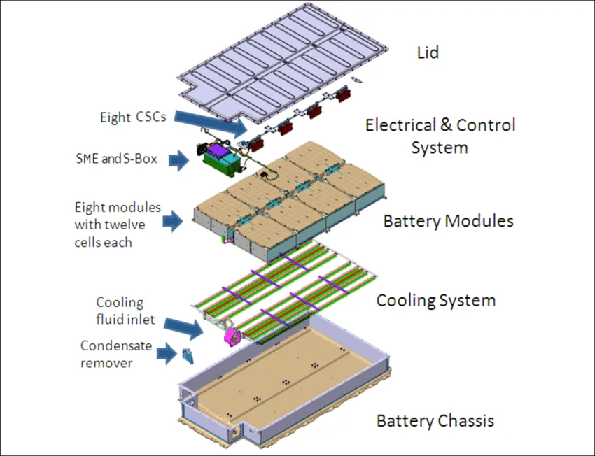 Dle popisu viz odkaz se v BMW i3 používají prizmatické články Samsung SDI. Baterie 33kWh by měla obsahovat články Samsung SDI 94Ah v konfiguraci 96S1P rozložené do 8-mi modulů (každý po 12-ti článcích).