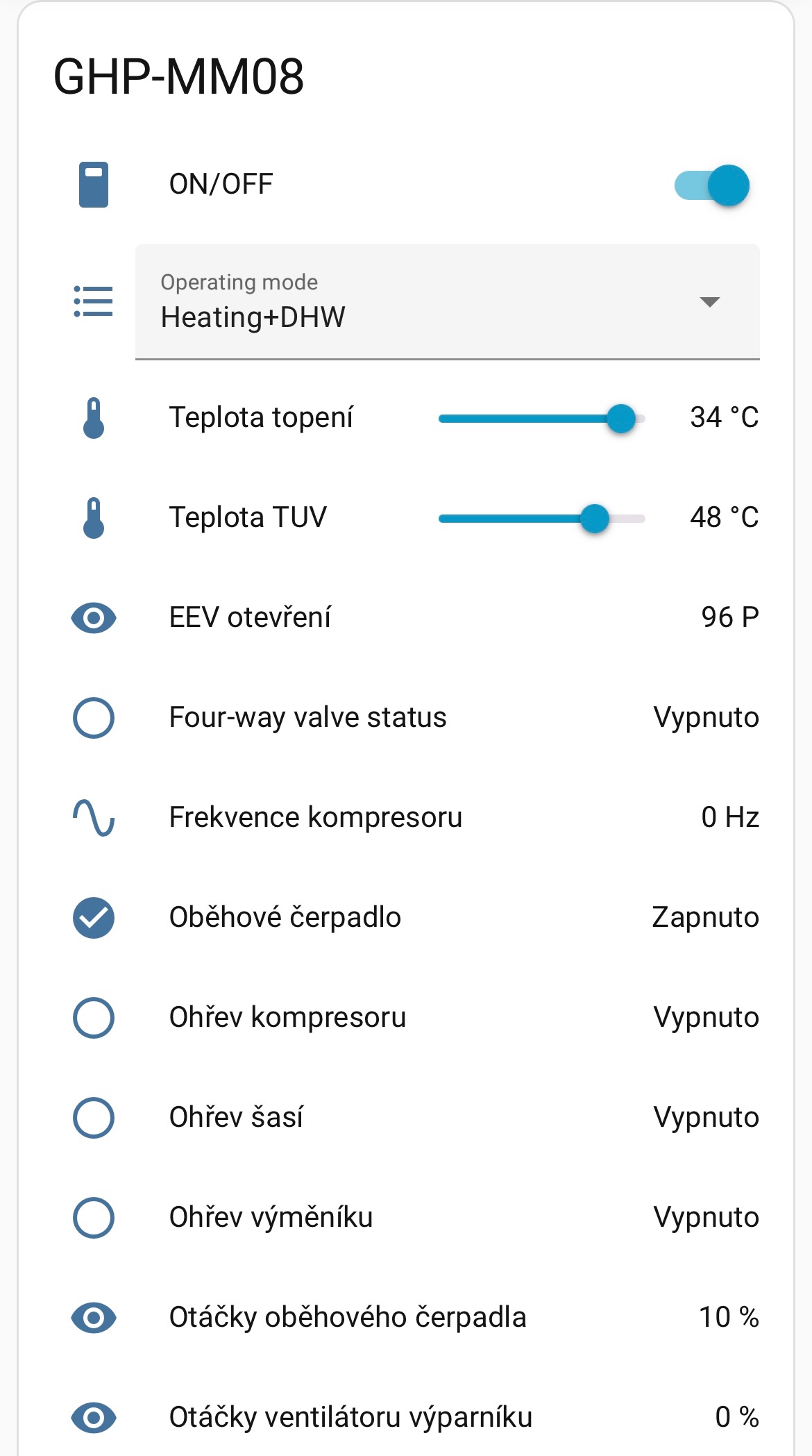 Napíšte mi teda zadanie, čo treba sprístupniť do GUI/HA - switch "Ohrev TÚV", horná teplota na vypnutie ohrevu... atď.