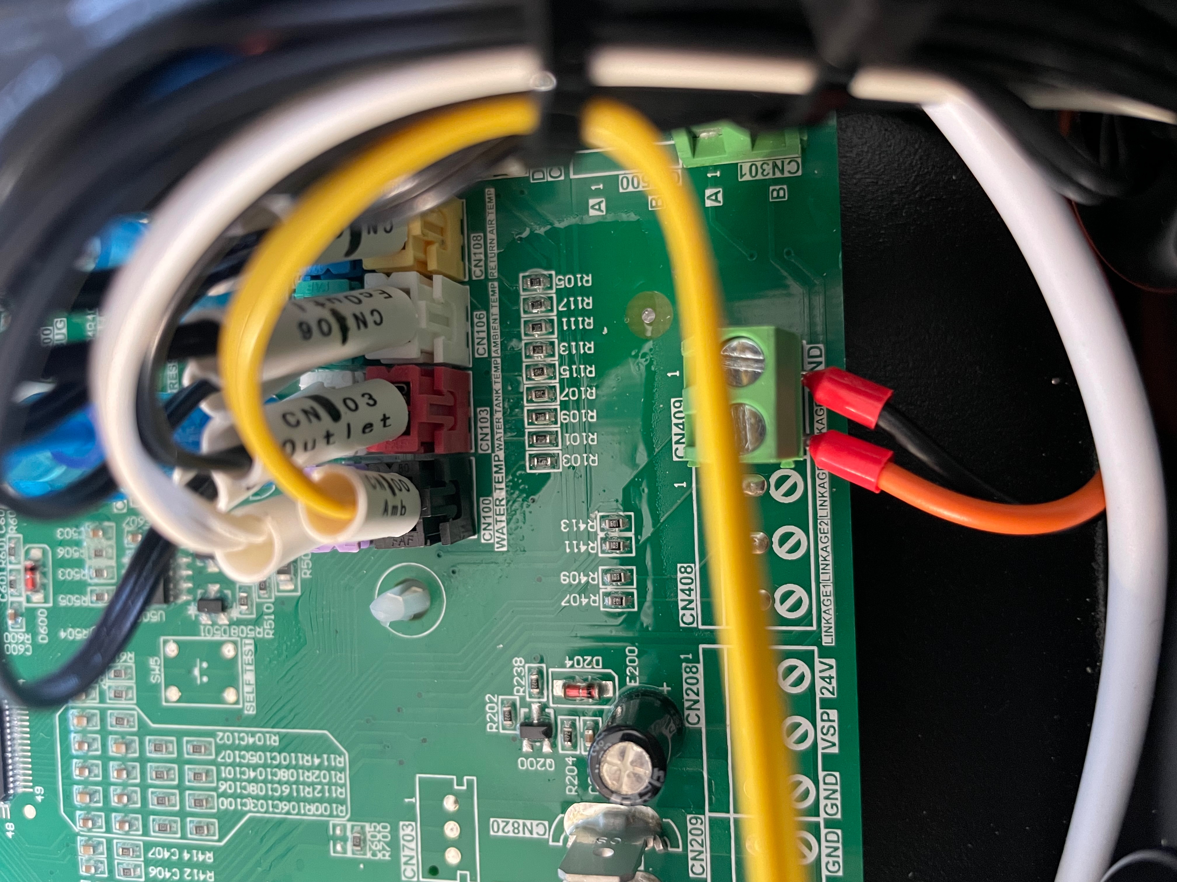 Ohledne TUV na desce je cidlo oznacene WATER TANK TEMP CN103 ale na kabelu je pak popisek OUTLET TEMP takze asi nejak pocitano s TUV je jen cidlo pouzily na neco jineho